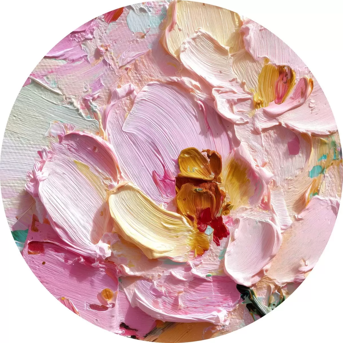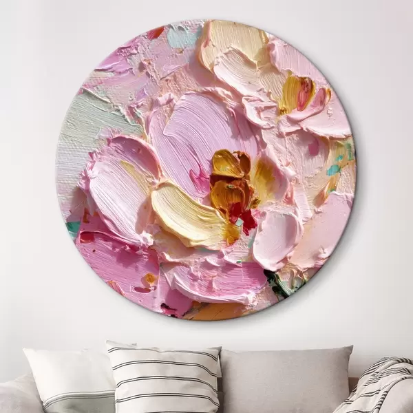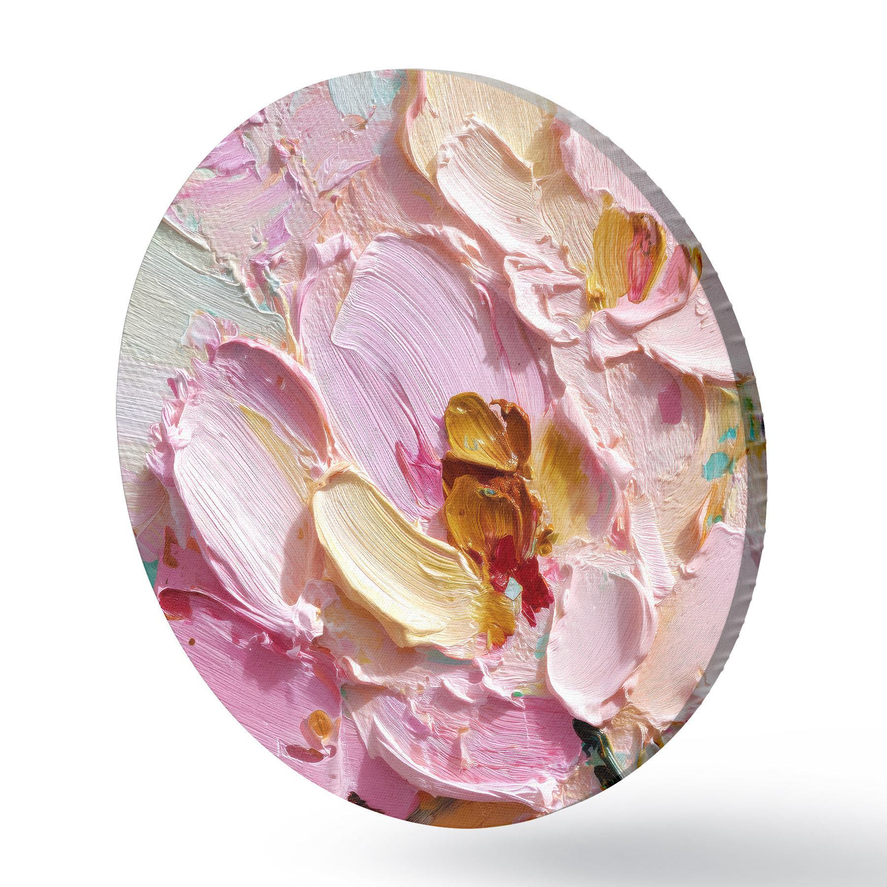 Tableaux ronds Magnolias roses : peinture texturée avec des traits dimensionnels r45249