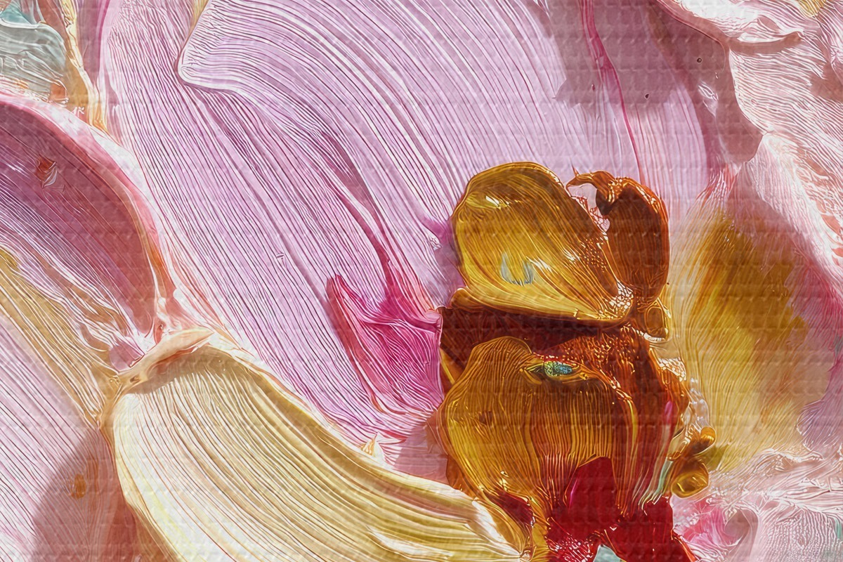 Image Magnolias roses : peinture texturée avec des traits dimensionnels Nr r45249