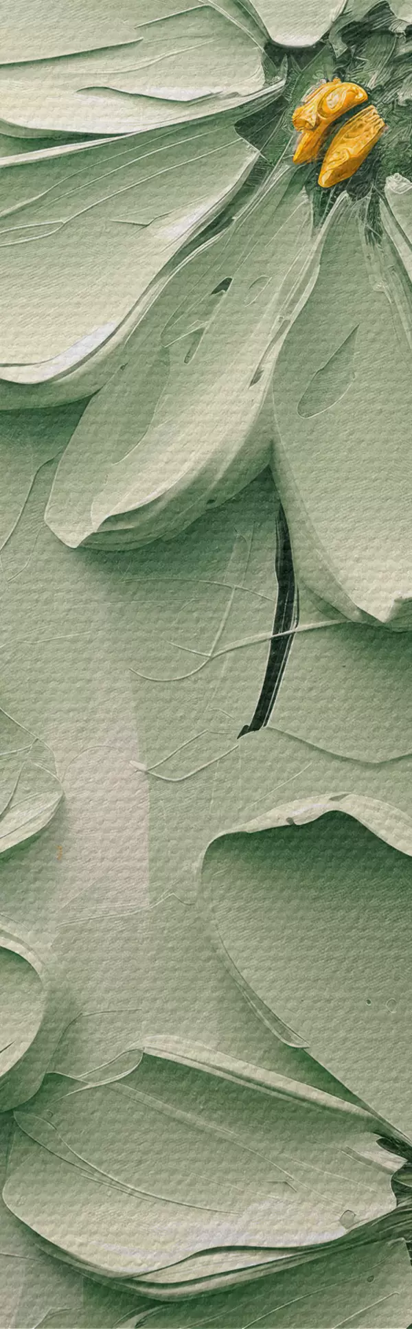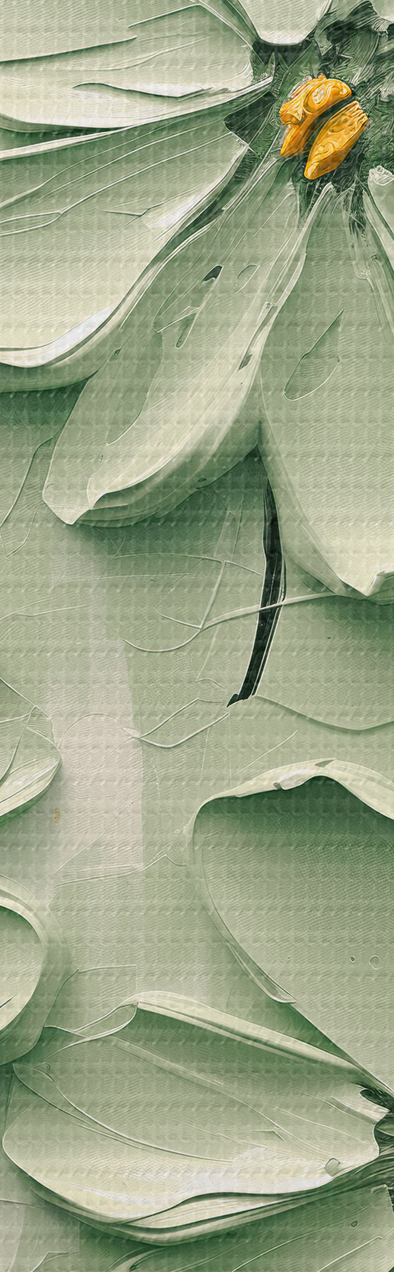 Image Fleurs vertes à centre jaune peintes à grands coups de pinceau sur fond clair Nr r45265