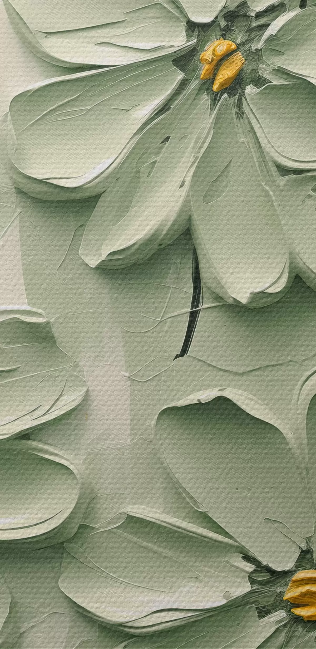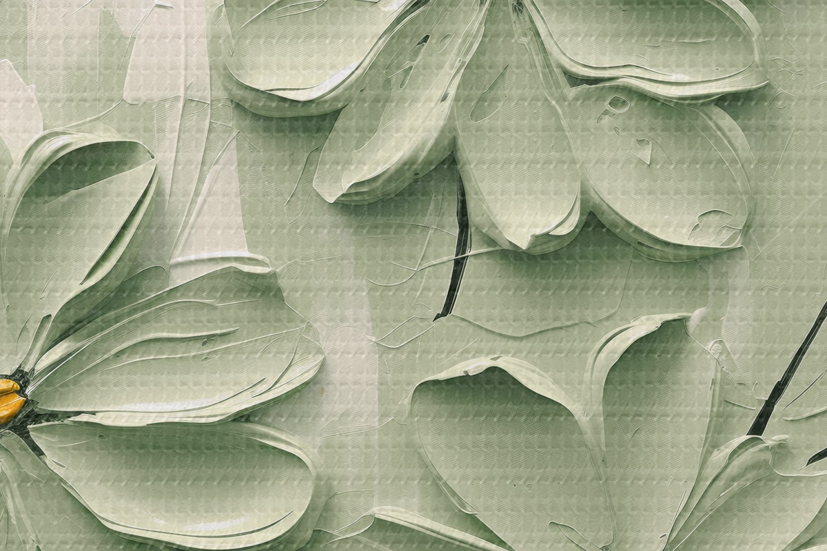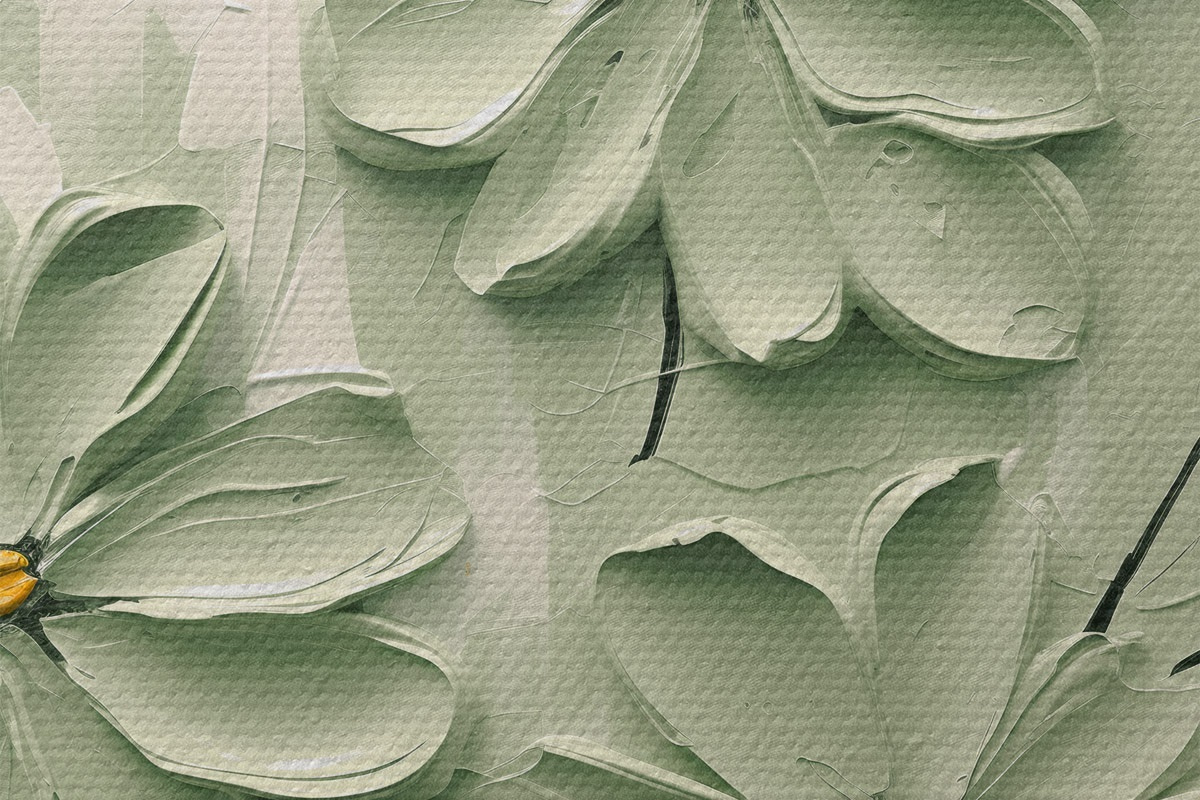 Image Fleurs vertes à centre jaune peintes à grands coups de pinceau sur fond clair Nr r45265