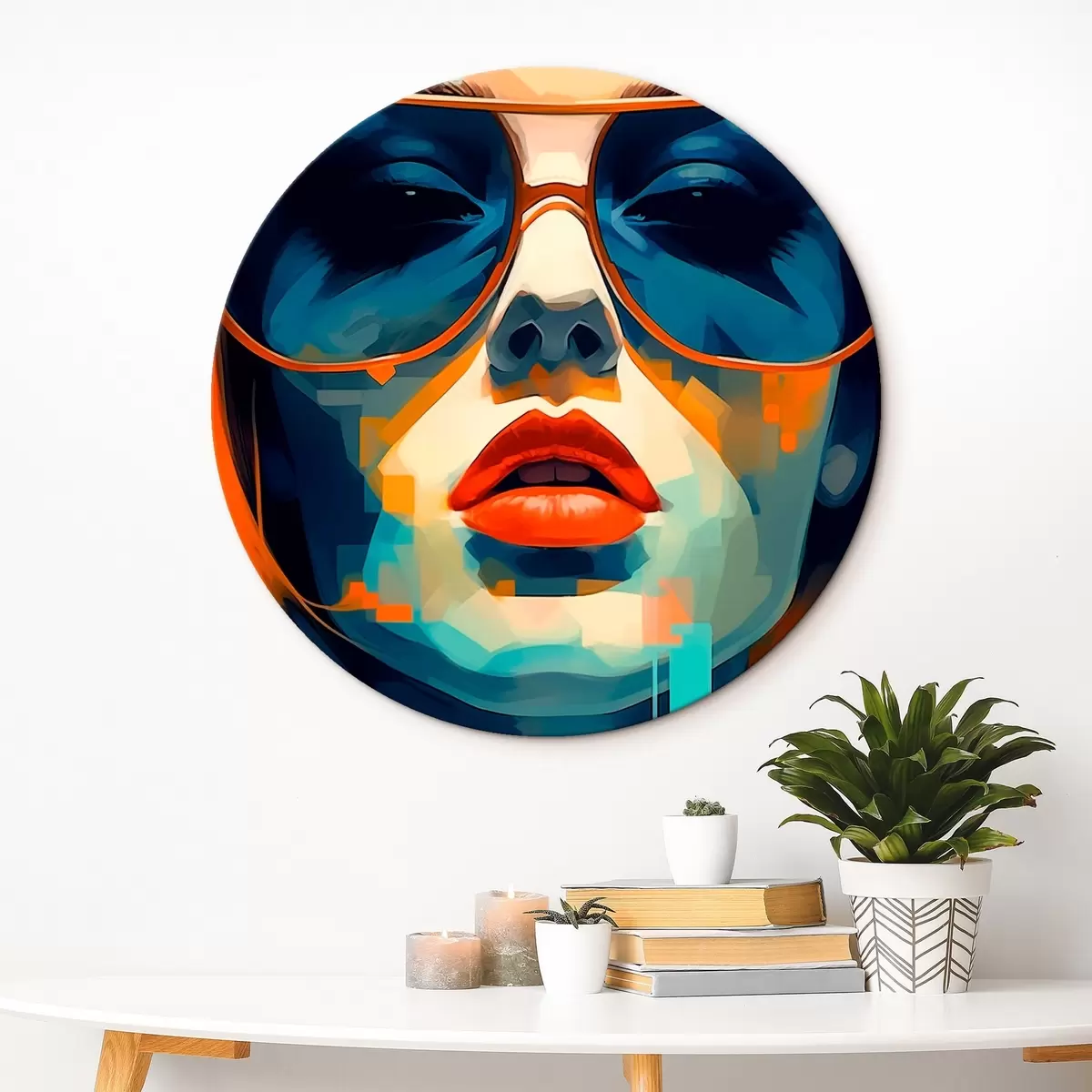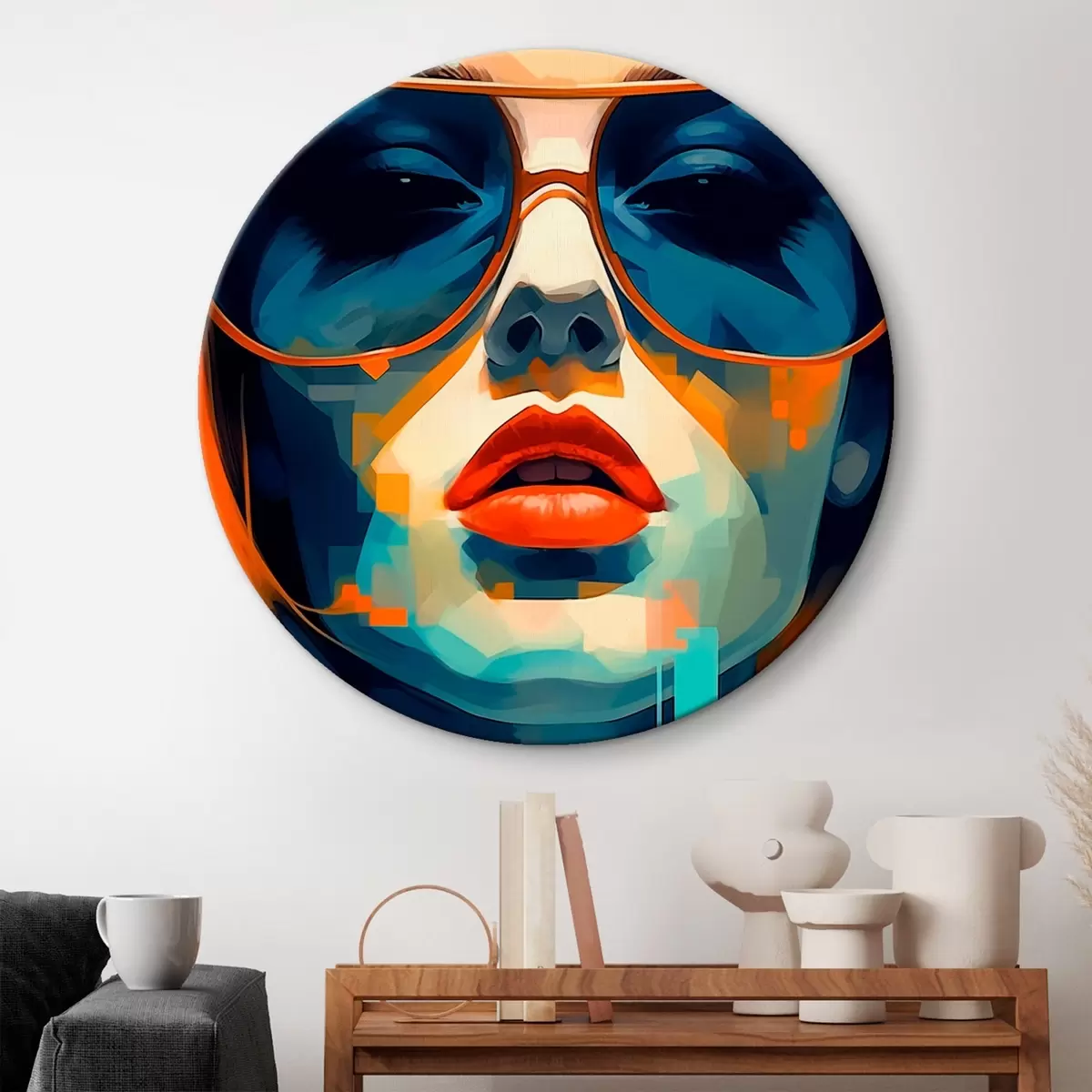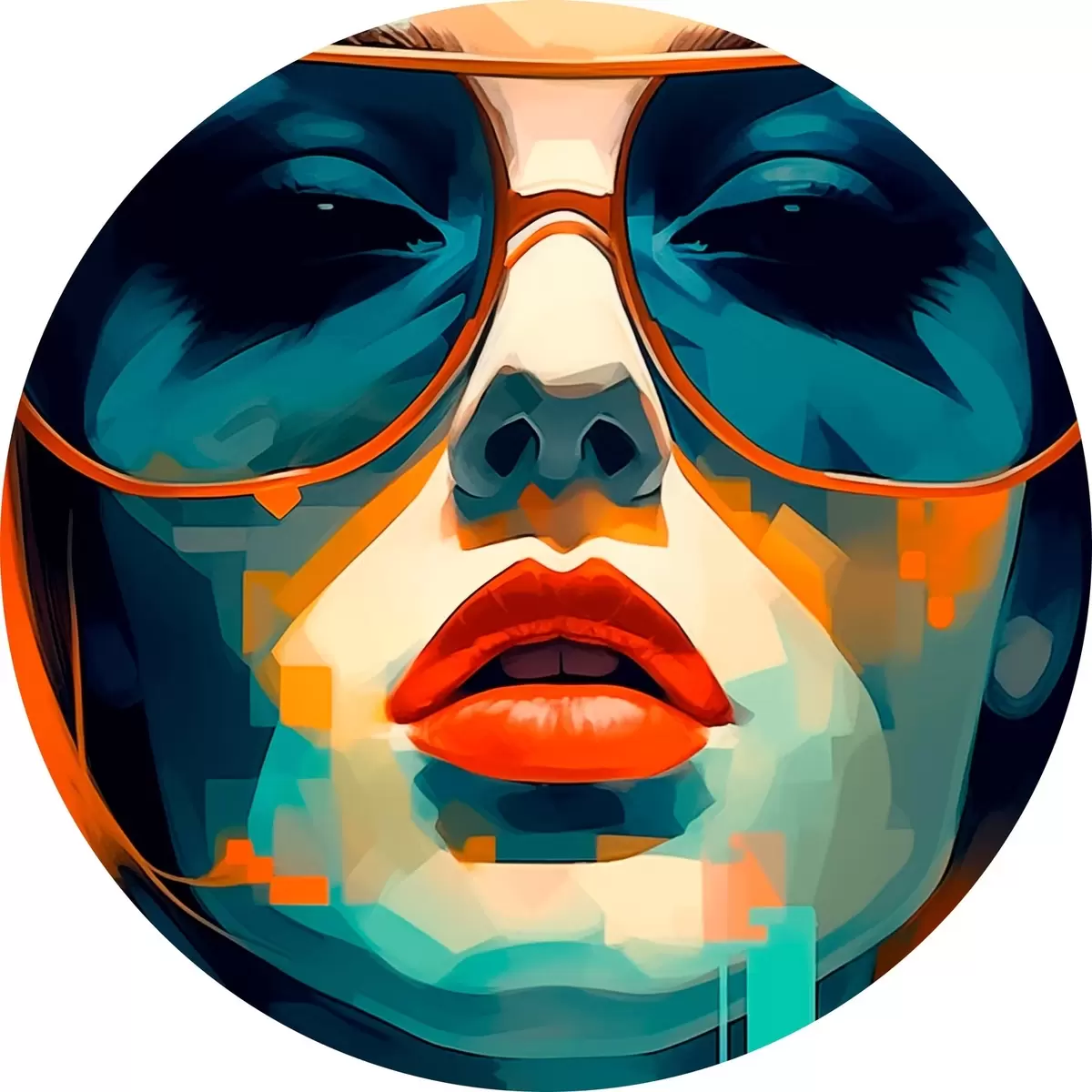 Tableaux ronds Portrait abstrait d'une femme portant des lunettes de soleil r45328