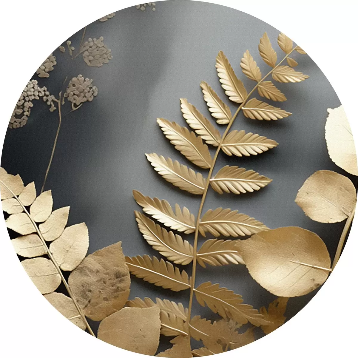 Tableaux ronds Branches d'eucalyptus et feuilles tropicales sur fond sombre r45333