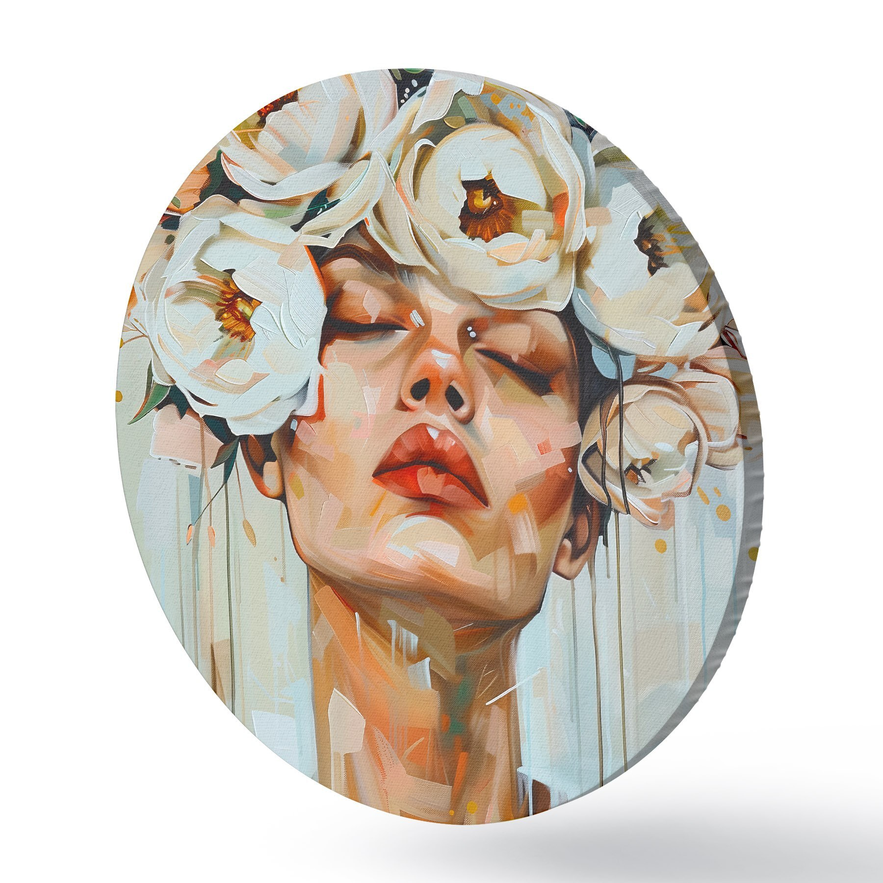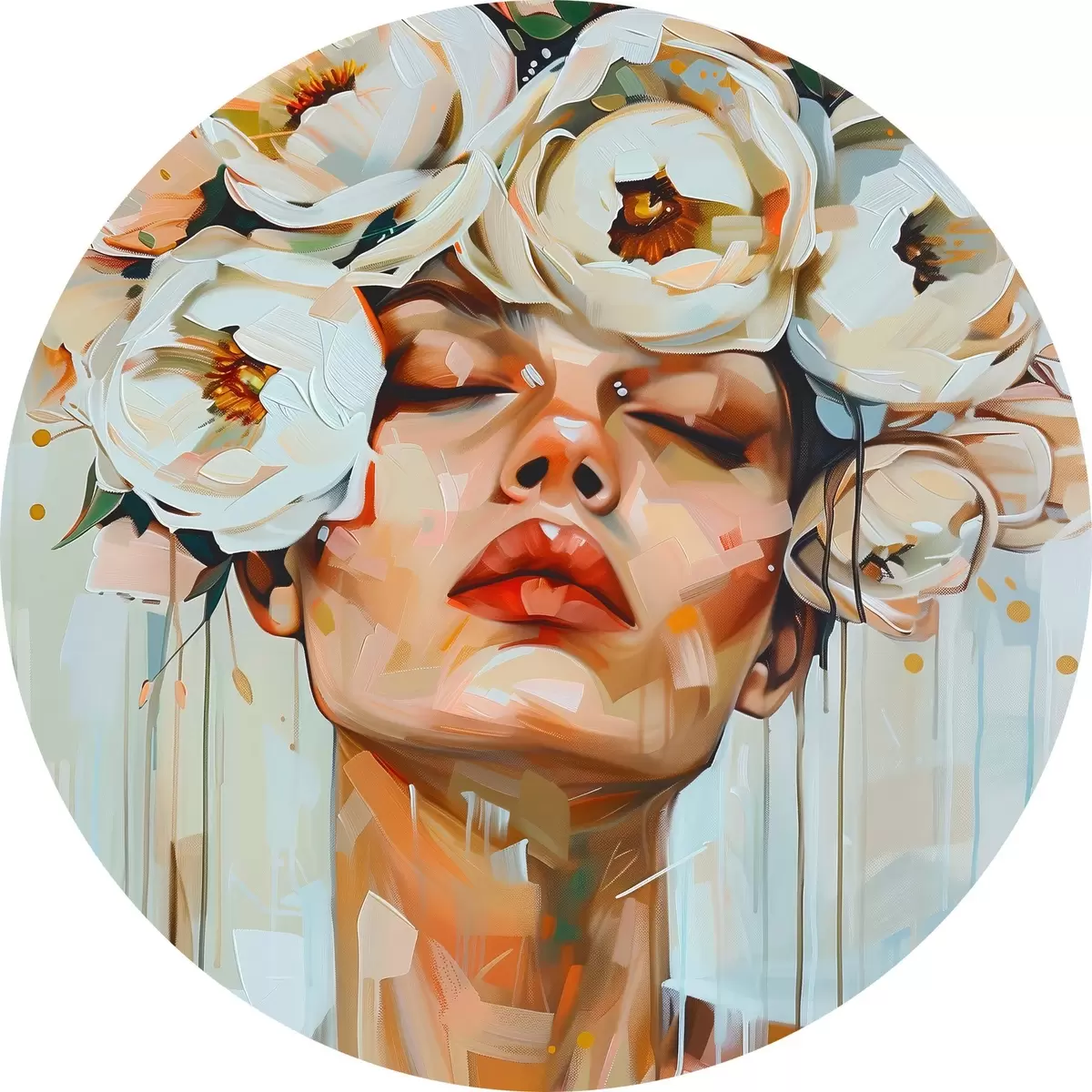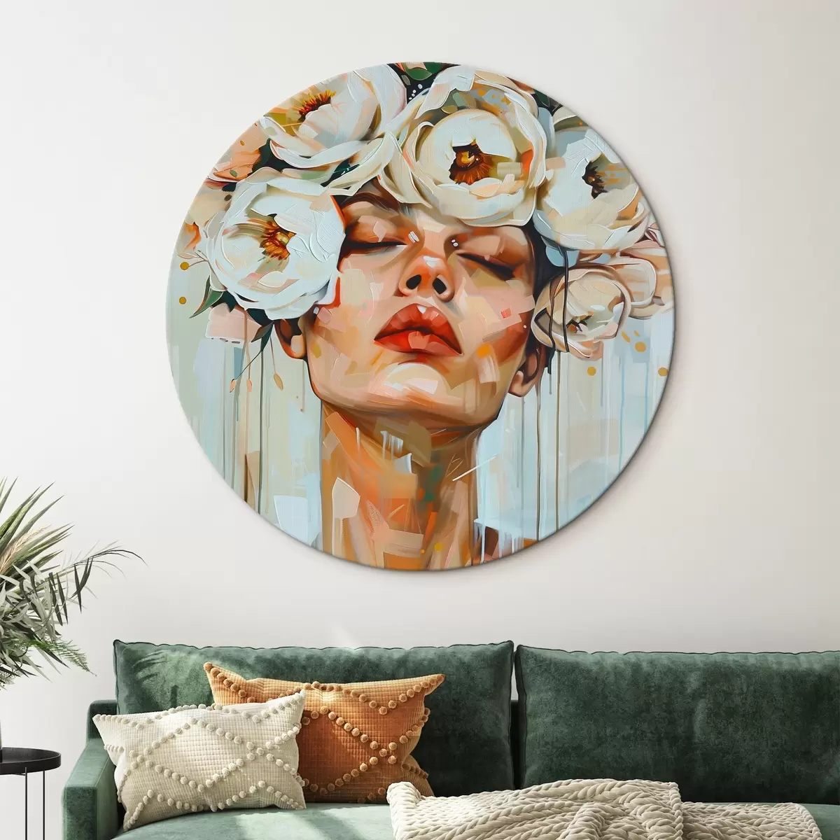 Tableaux ronds Portrait d'une femme avec des fleurs r45370