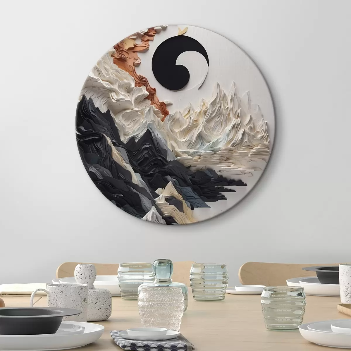 Tableaux ronds Paysage abstrait avec des montagnes dans un style papier r45482