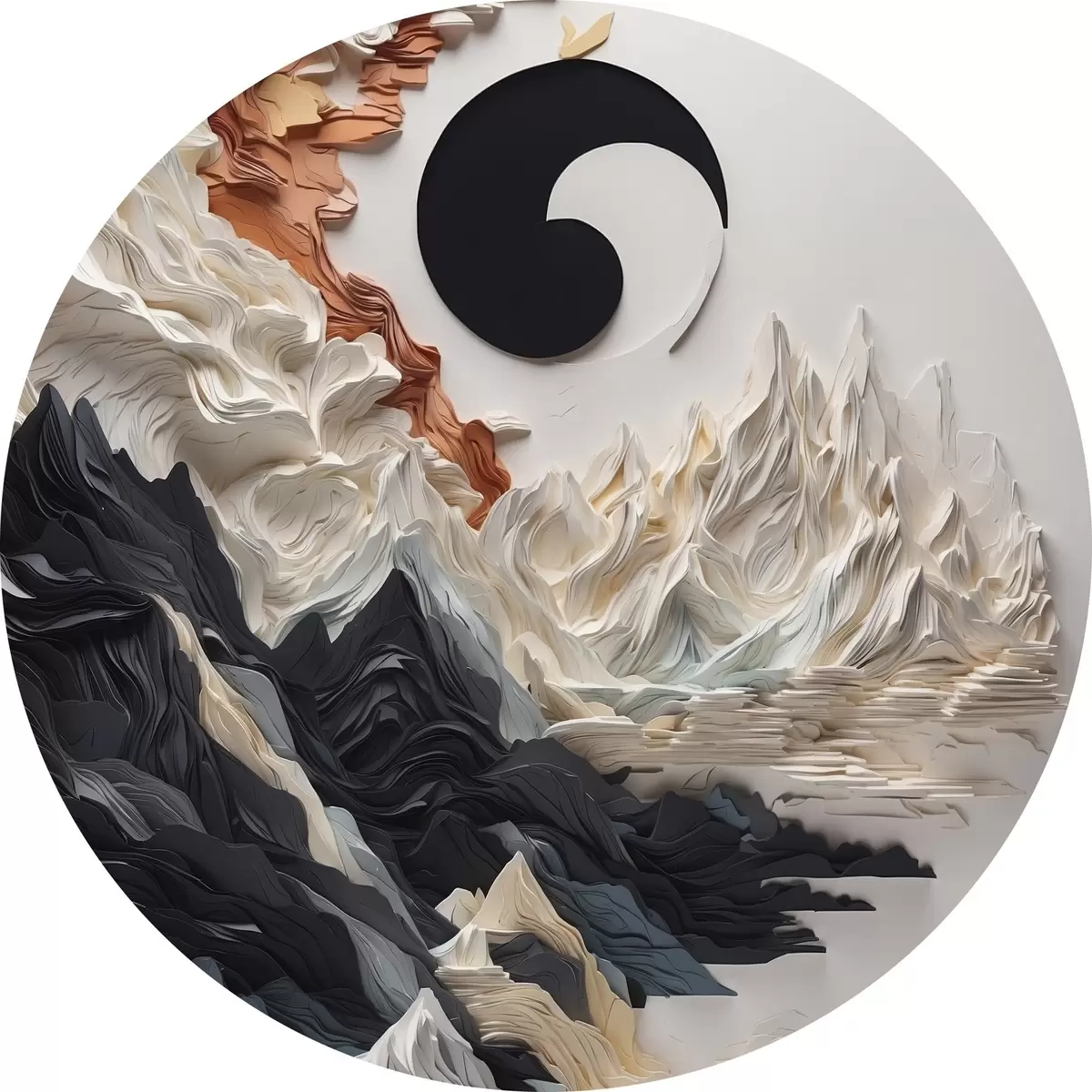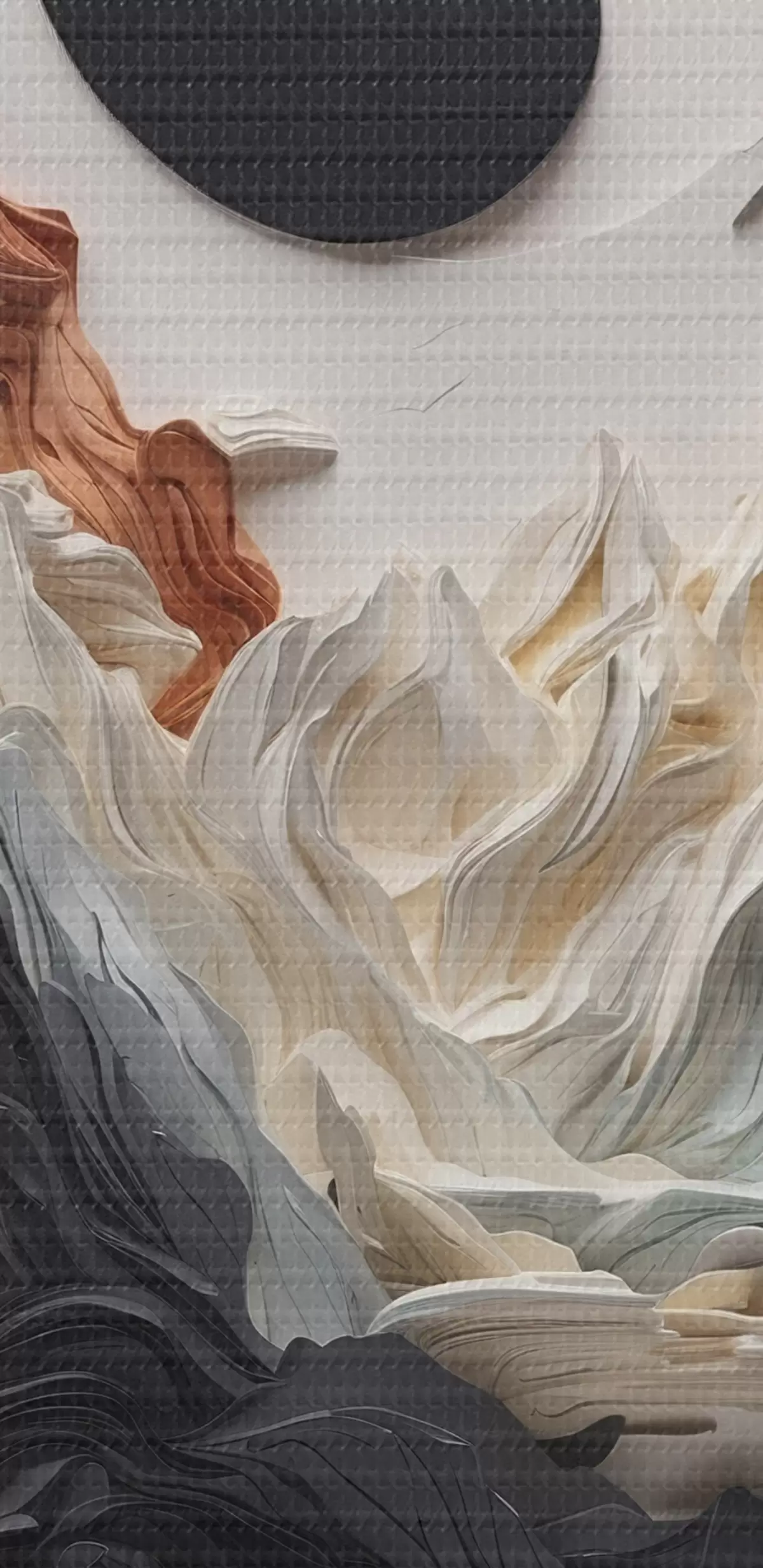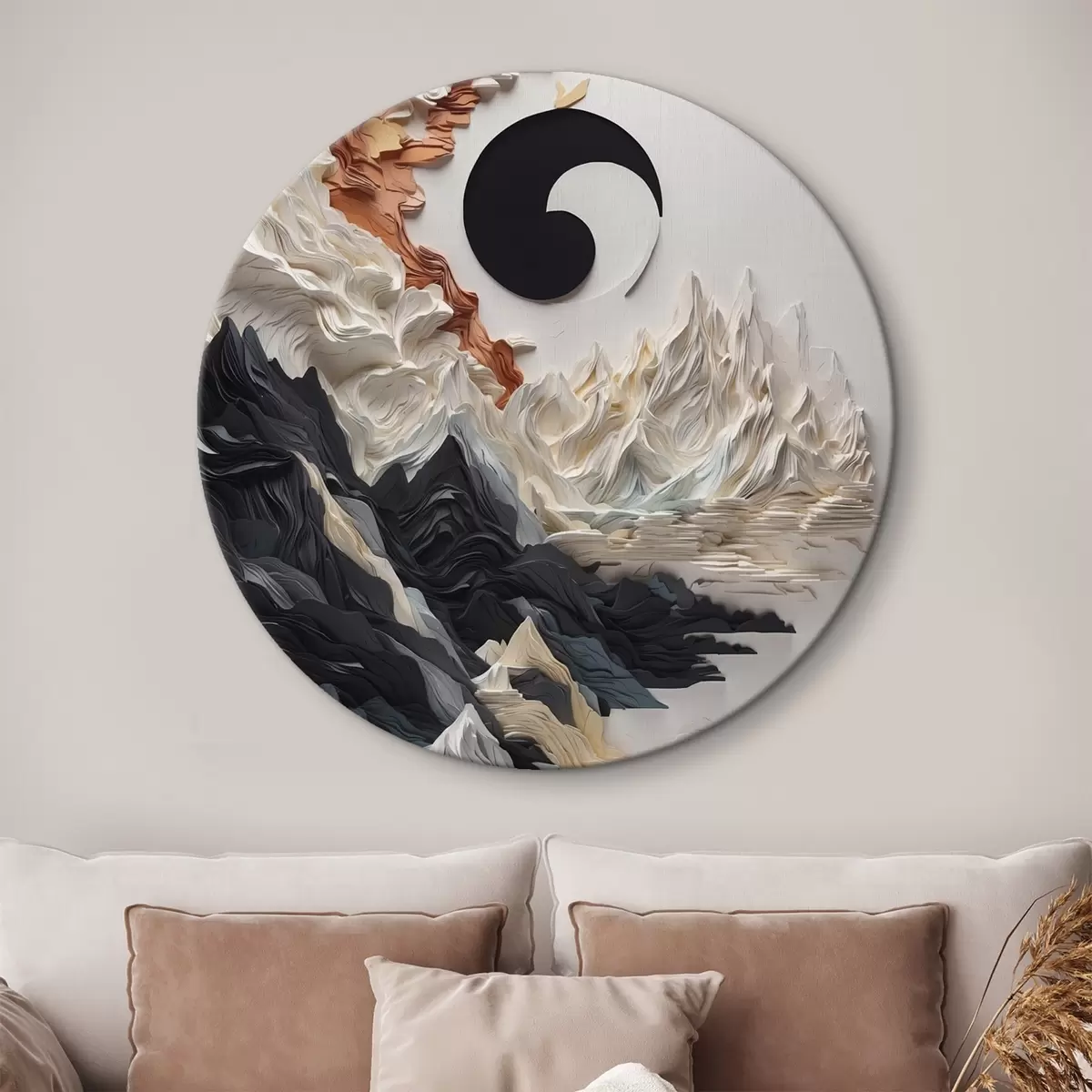 Tableaux ronds Paysage abstrait avec des montagnes dans un style papier r45482