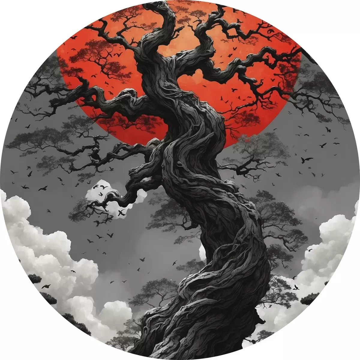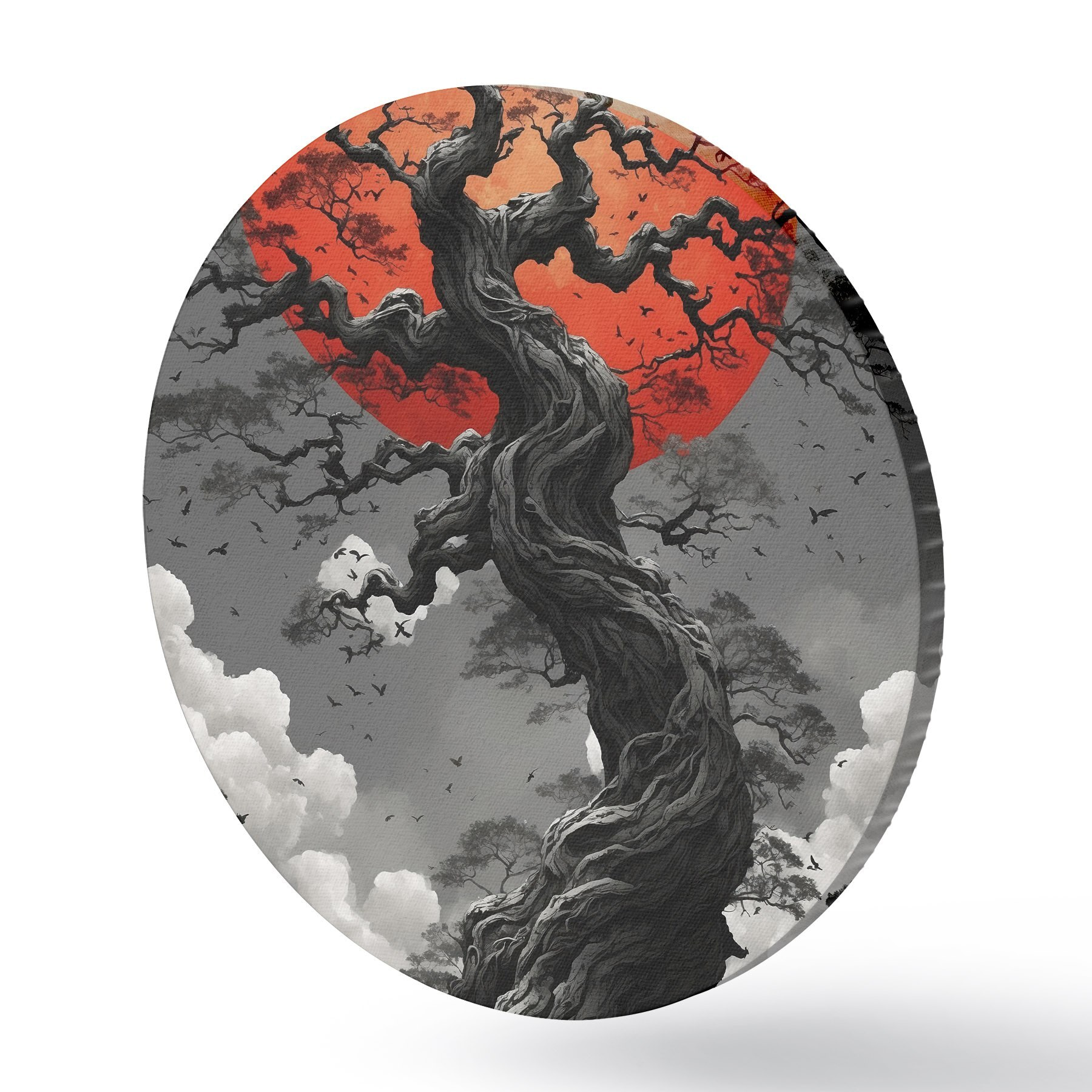 Tableaux ronds Paysage abstrait avec des montagnes dans un style papier r45485