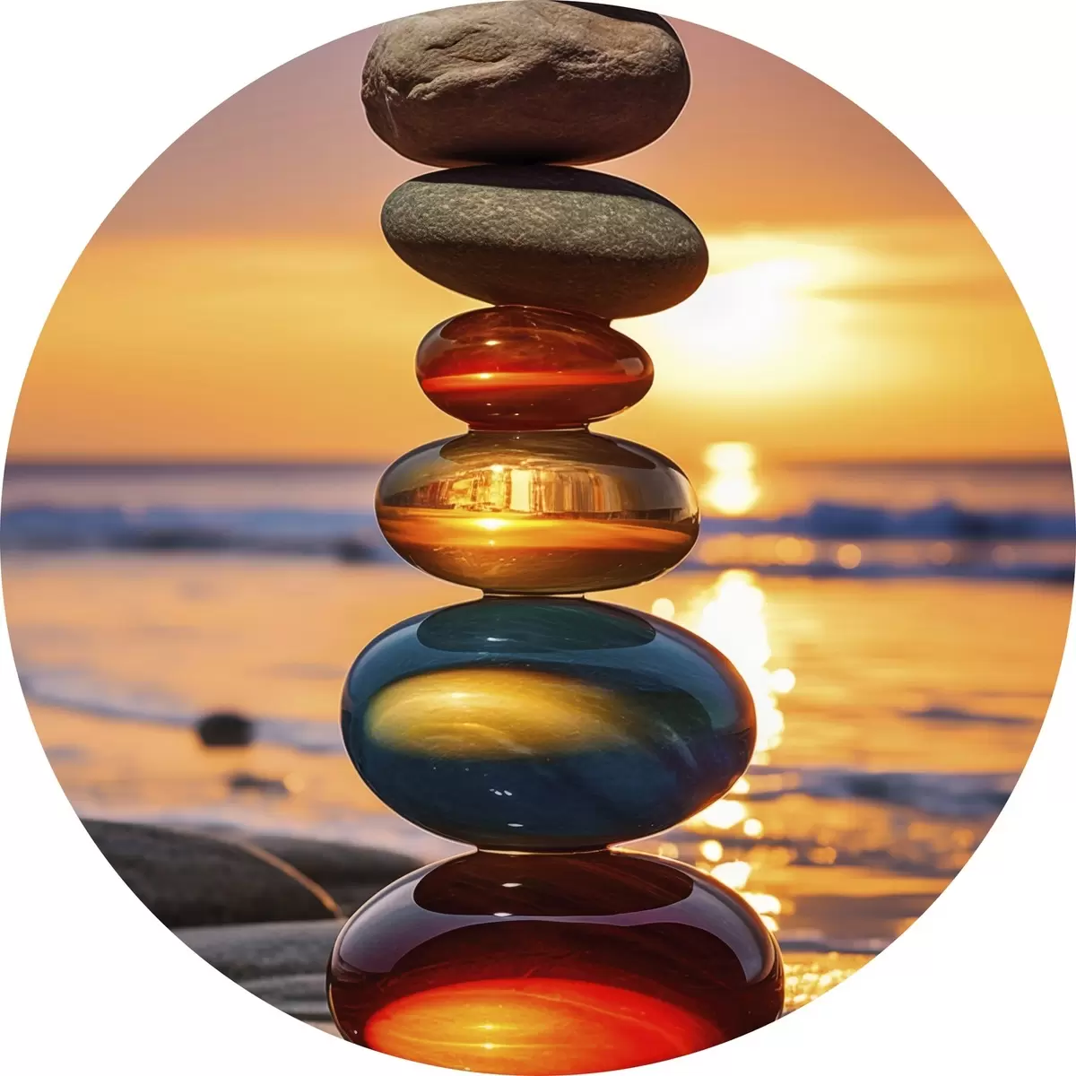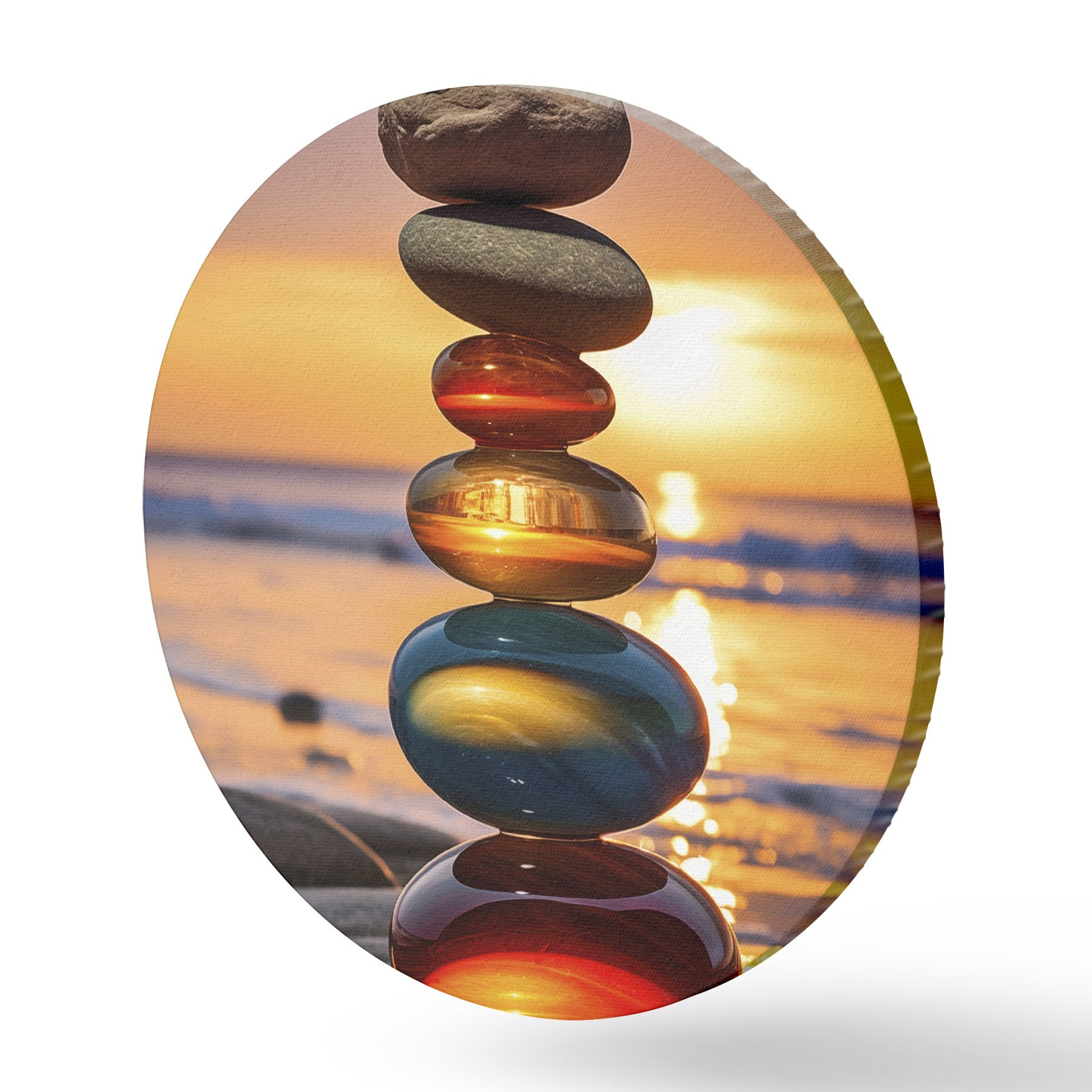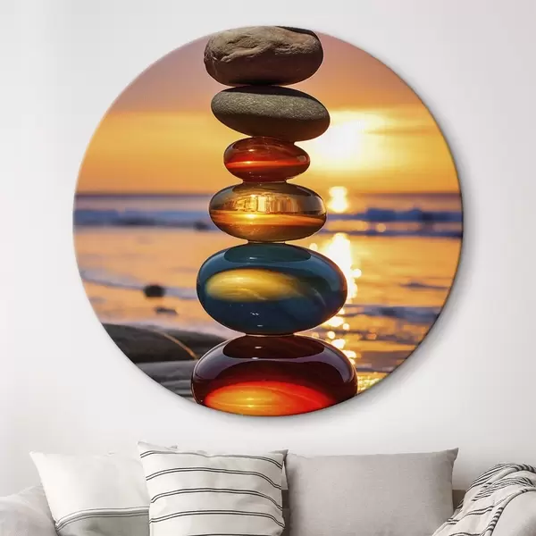 Tableaux ronds Pierres empilées sur fond de coucher de soleil r45520