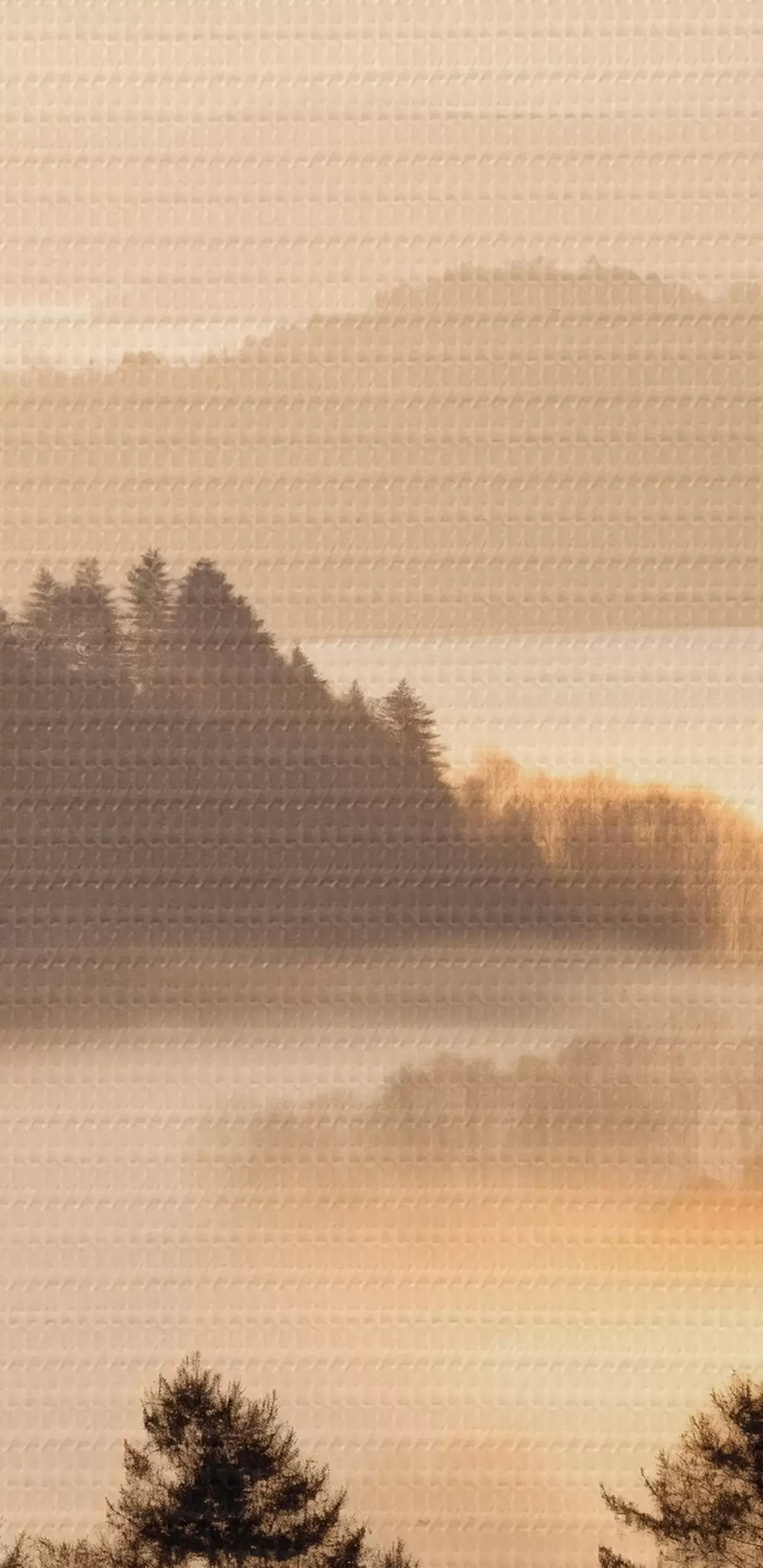 Image Un paysage de montagne avec une forêt et des oiseaux volant dans le ciel, le tout recouvert d'une épaisse couche de brouillard au lever du soleil Nr r45564