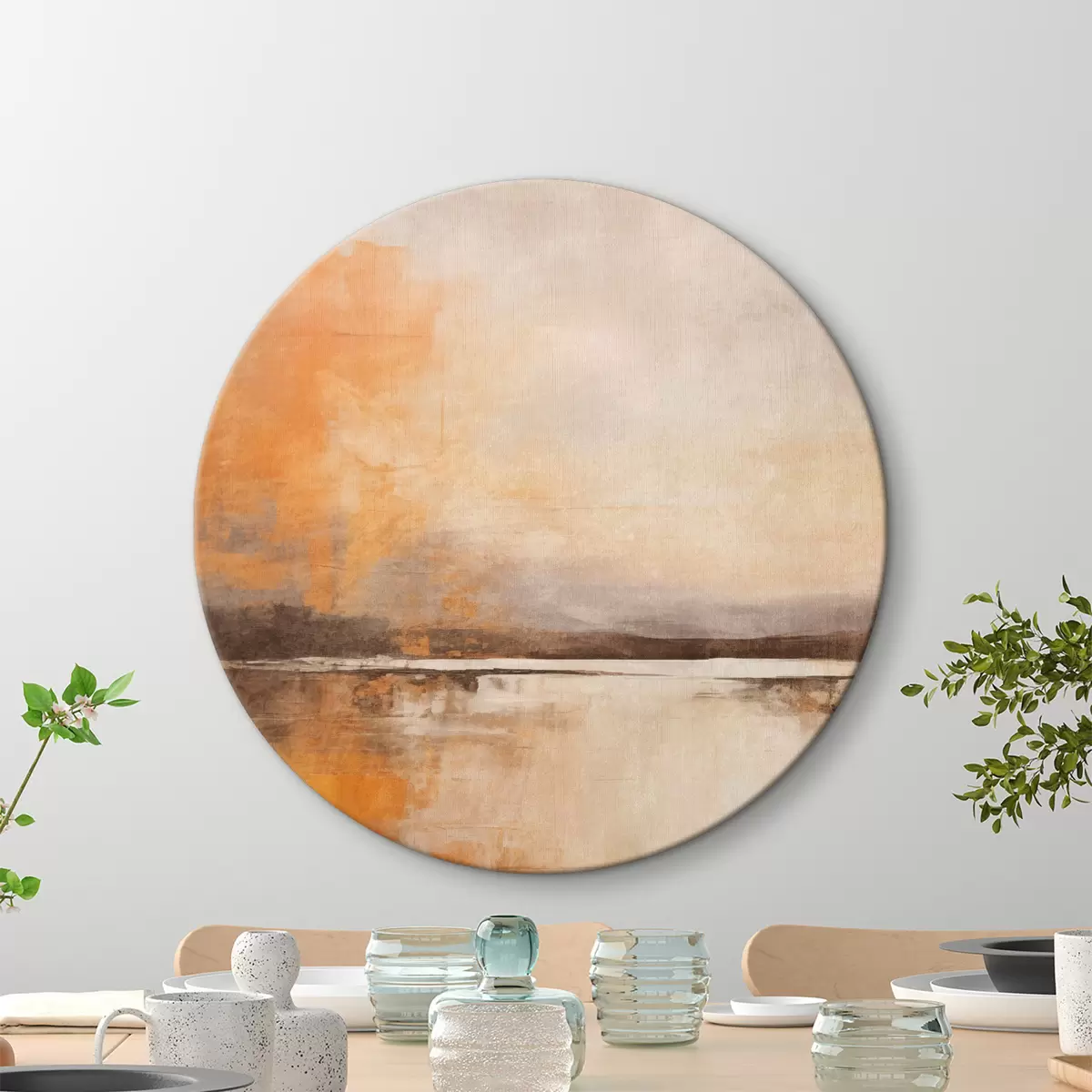Tableaux ronds Paysage abstrait texturé dans les tons orange, marron et beige r45568