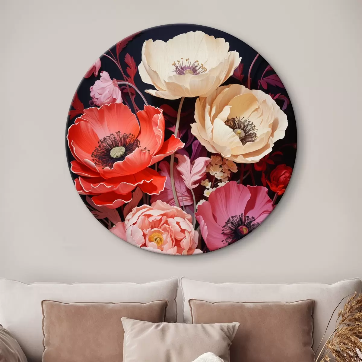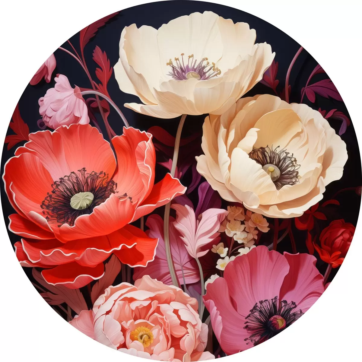 Tableaux ronds Bouquet de coquelicots dans les tons roses et rouges r45600