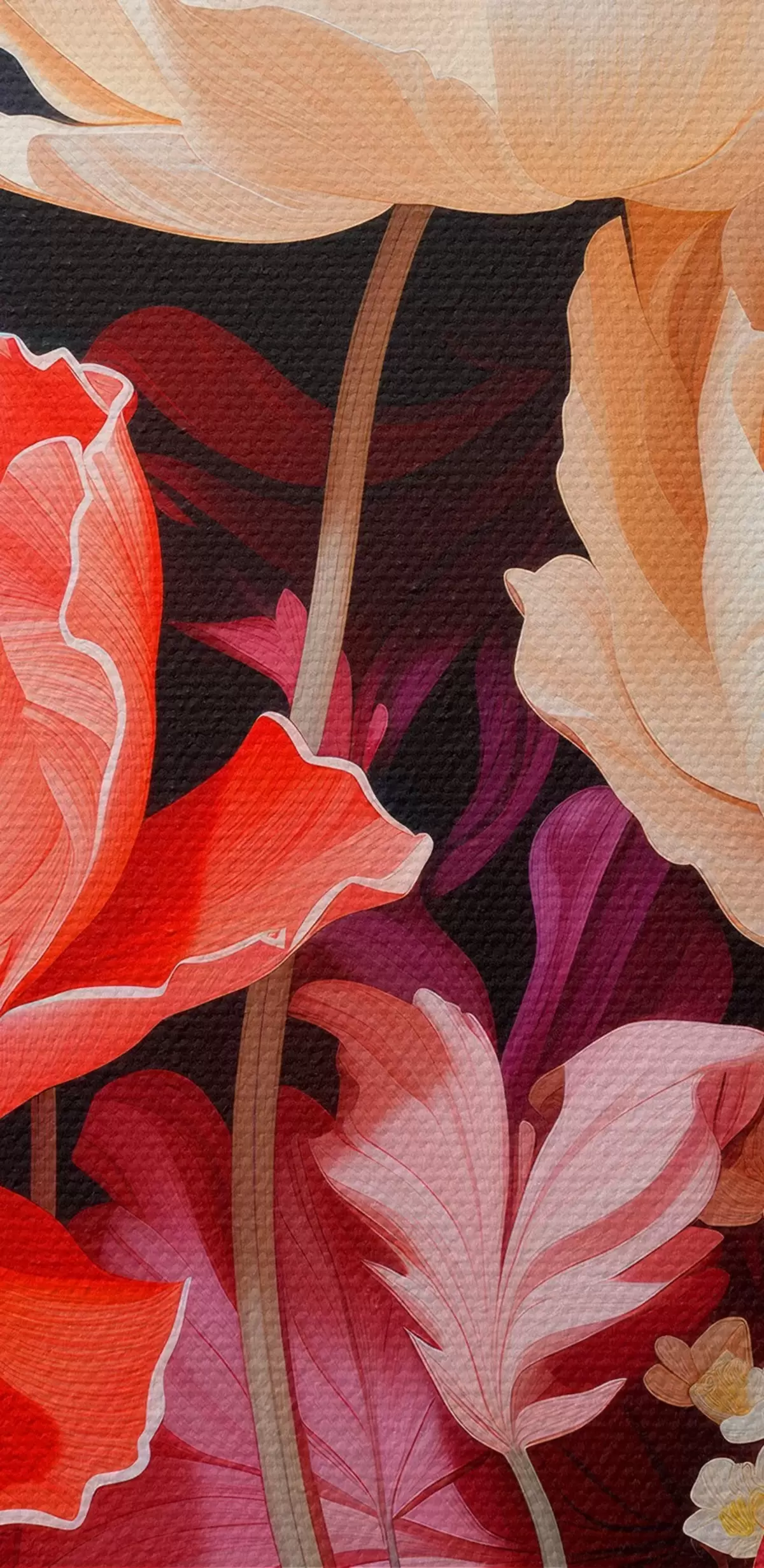 Trois types de matériaux peuvent être commandés : Economic Canvas - matériau dense et durable pour l'impression numérique, identique à la toile de peintre, surface imperméable, reproduction réaliste des détails, matériau à grain moyen. Premium Canvas - la texture ressemble à celle d'une toile de peintre (petits fils entrelacés). Reproduction douce et détaillée de l'image sur une surface mate. Eco-Premium - tissu 100 % coton de haute qualité. Grâce aux fibres naturelles de coton, le matériau est durable et résistant à l'usure. Excellente reproduction des couleurs et des détails.