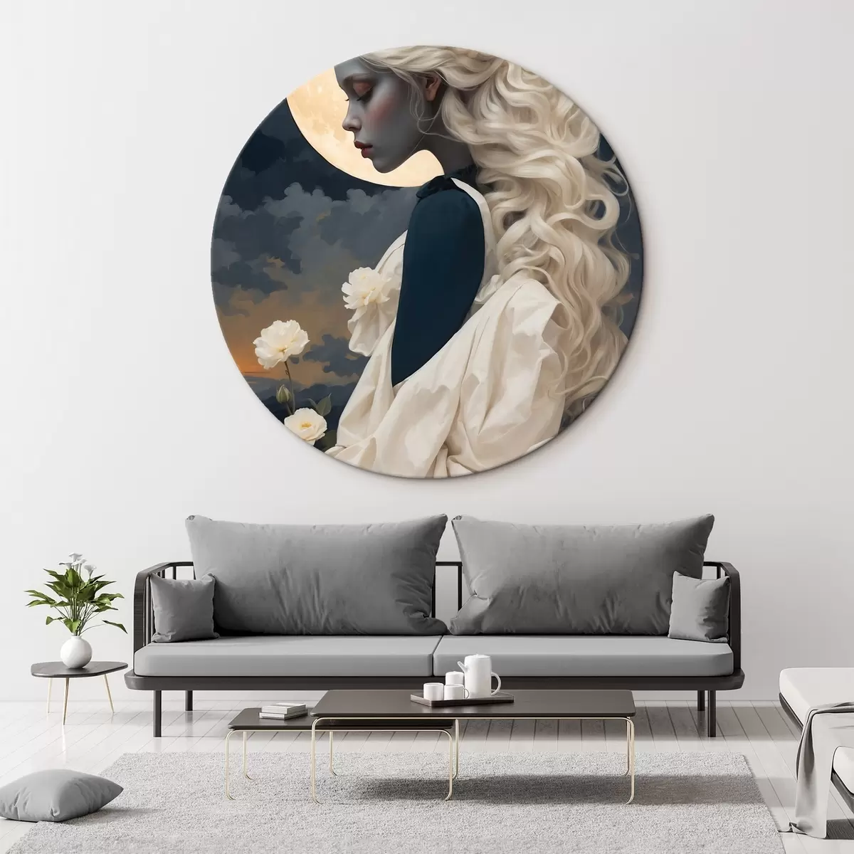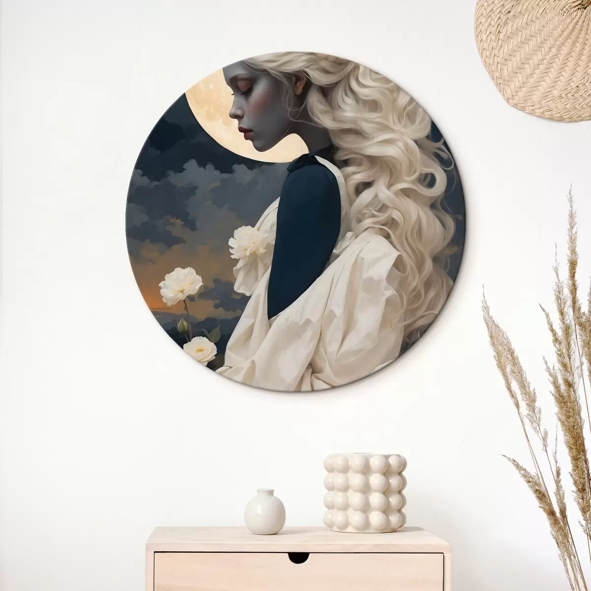 Tableaux ronds Femme aux cheveux blancs sous la lune r45622