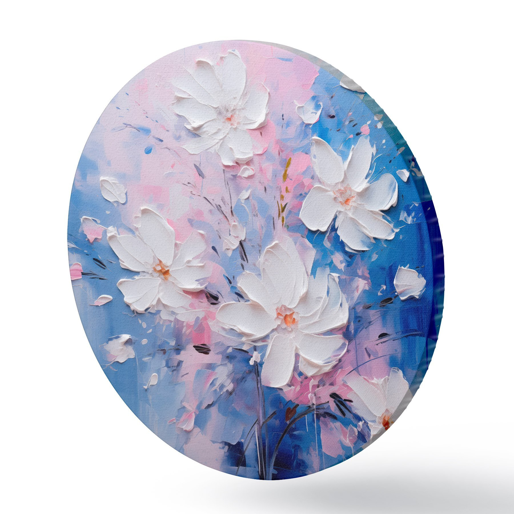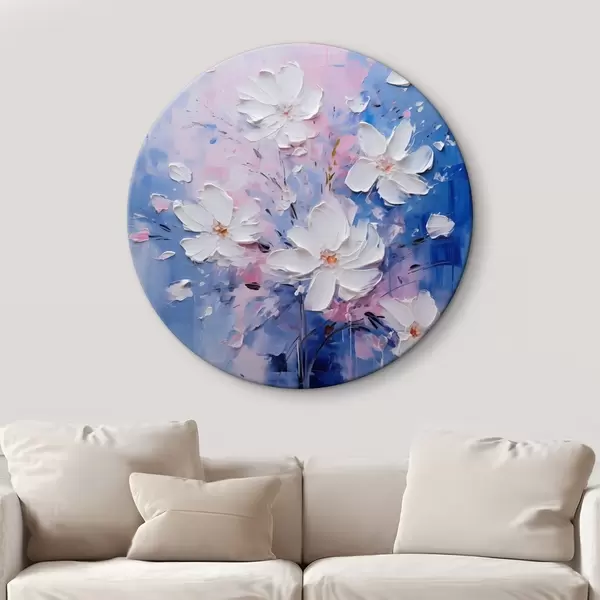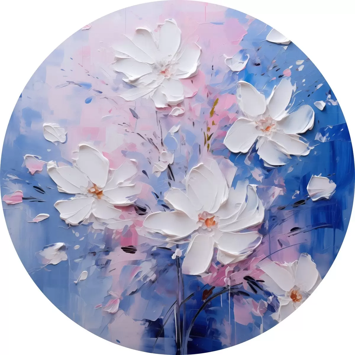 Tableaux ronds Fleurs volumétriques sur fond bleu en style empâté r45648