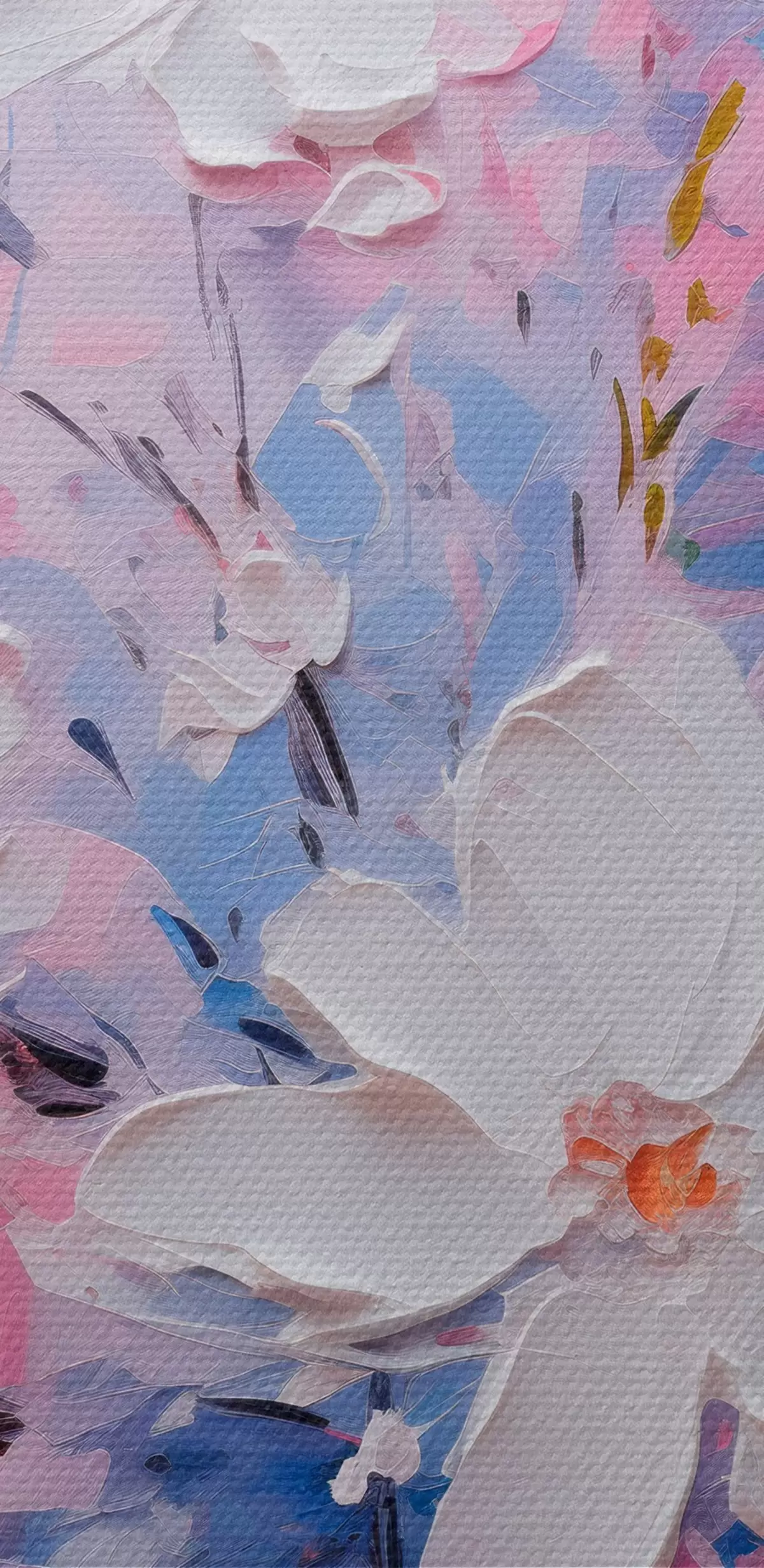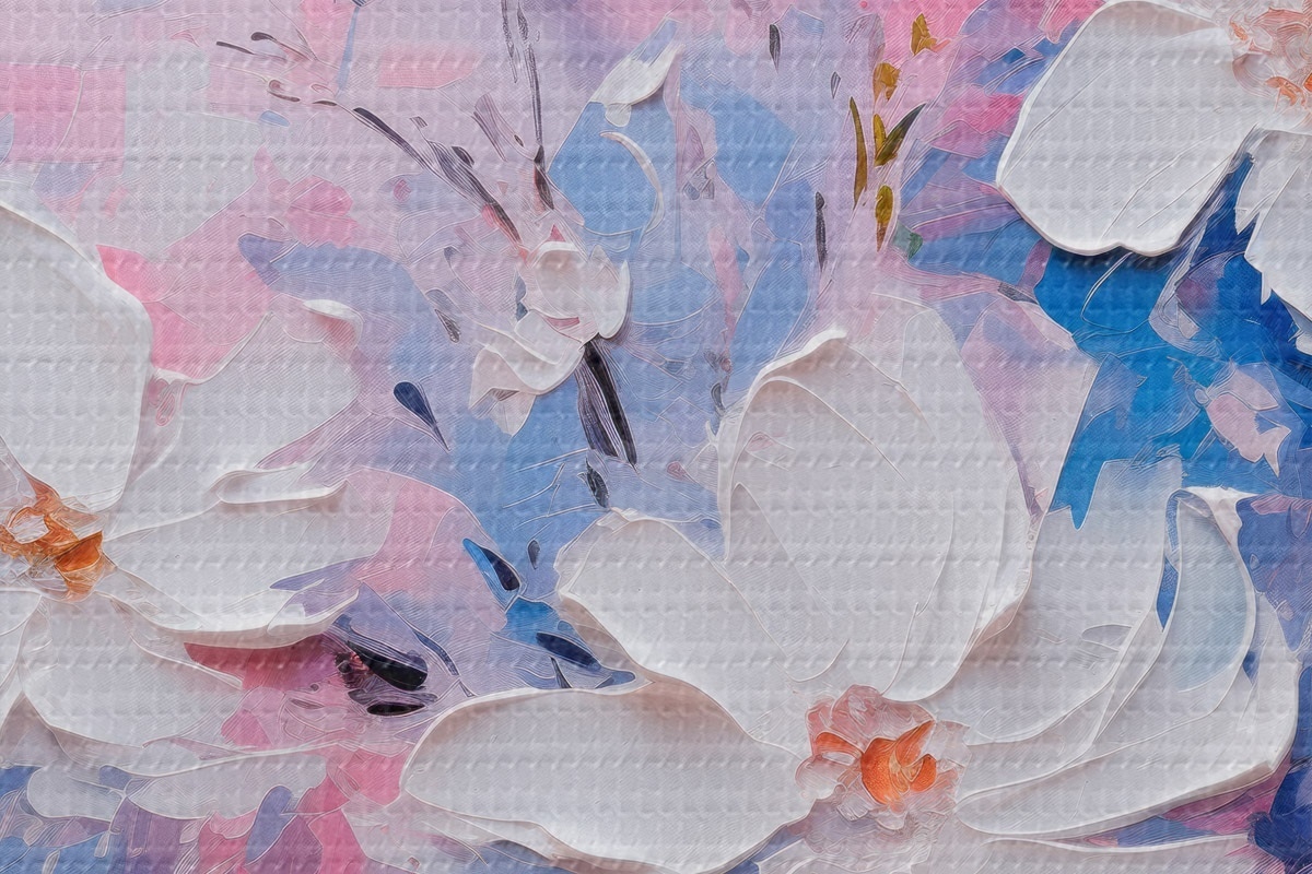 Image Fleurs volumétriques sur fond bleu en style empâté Nr r45648