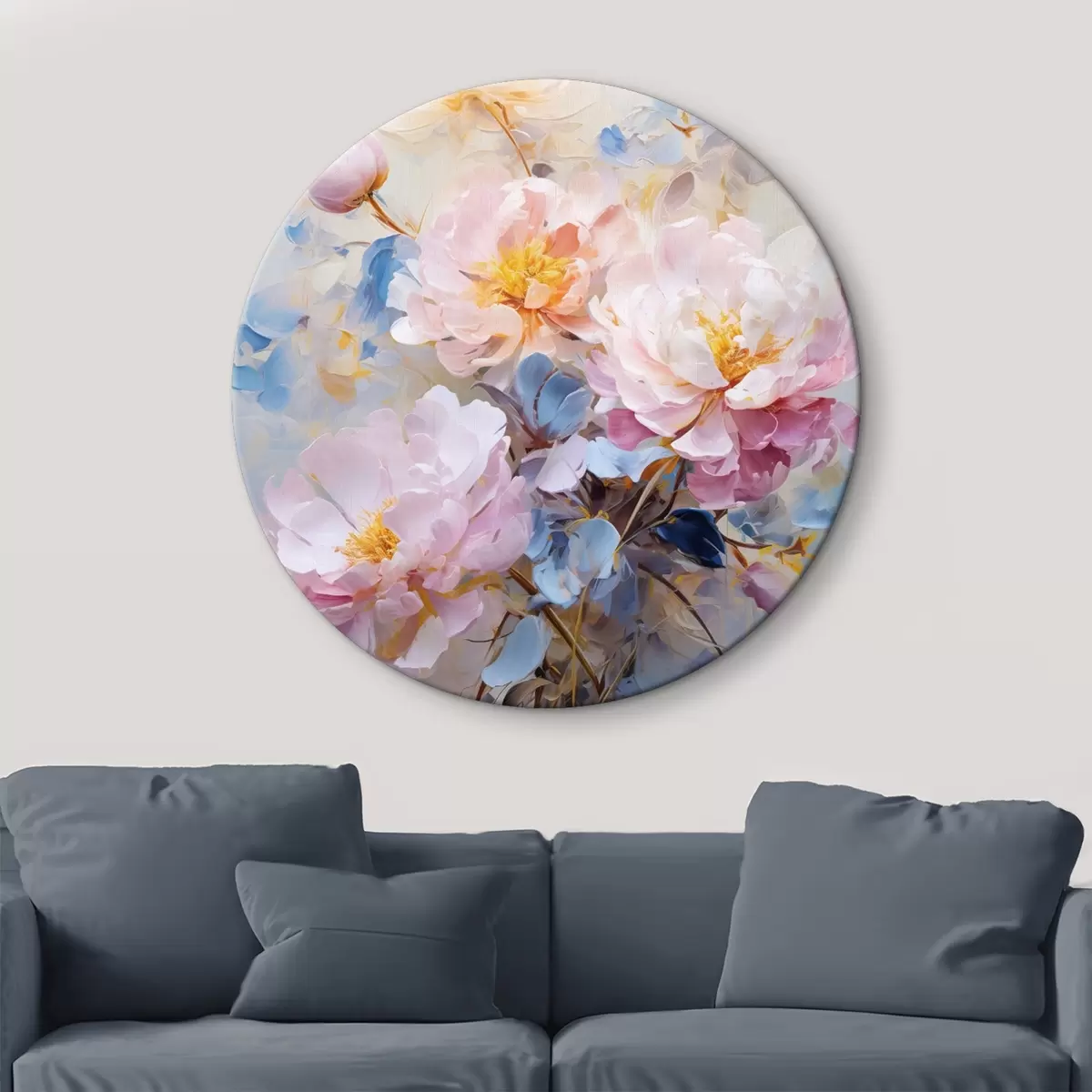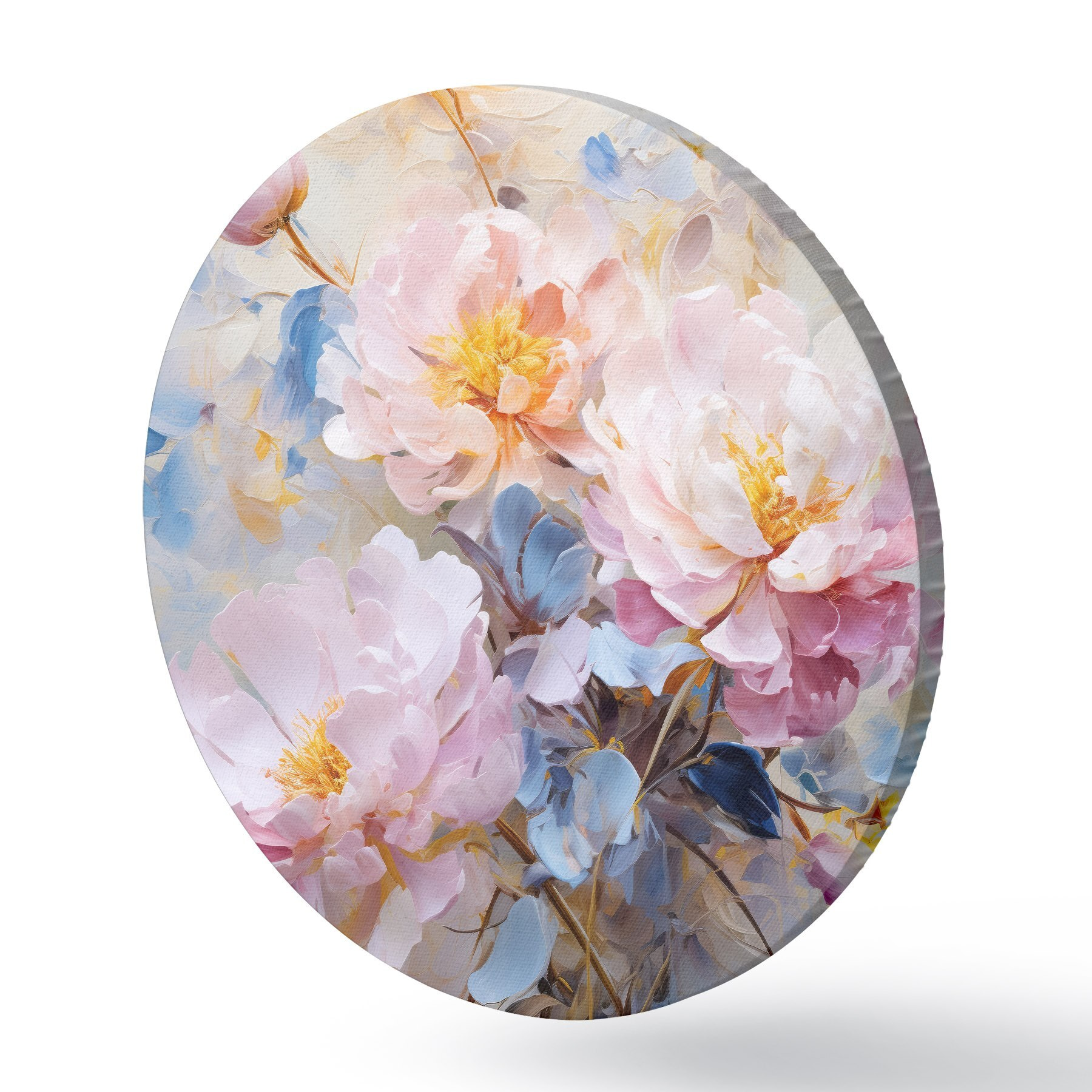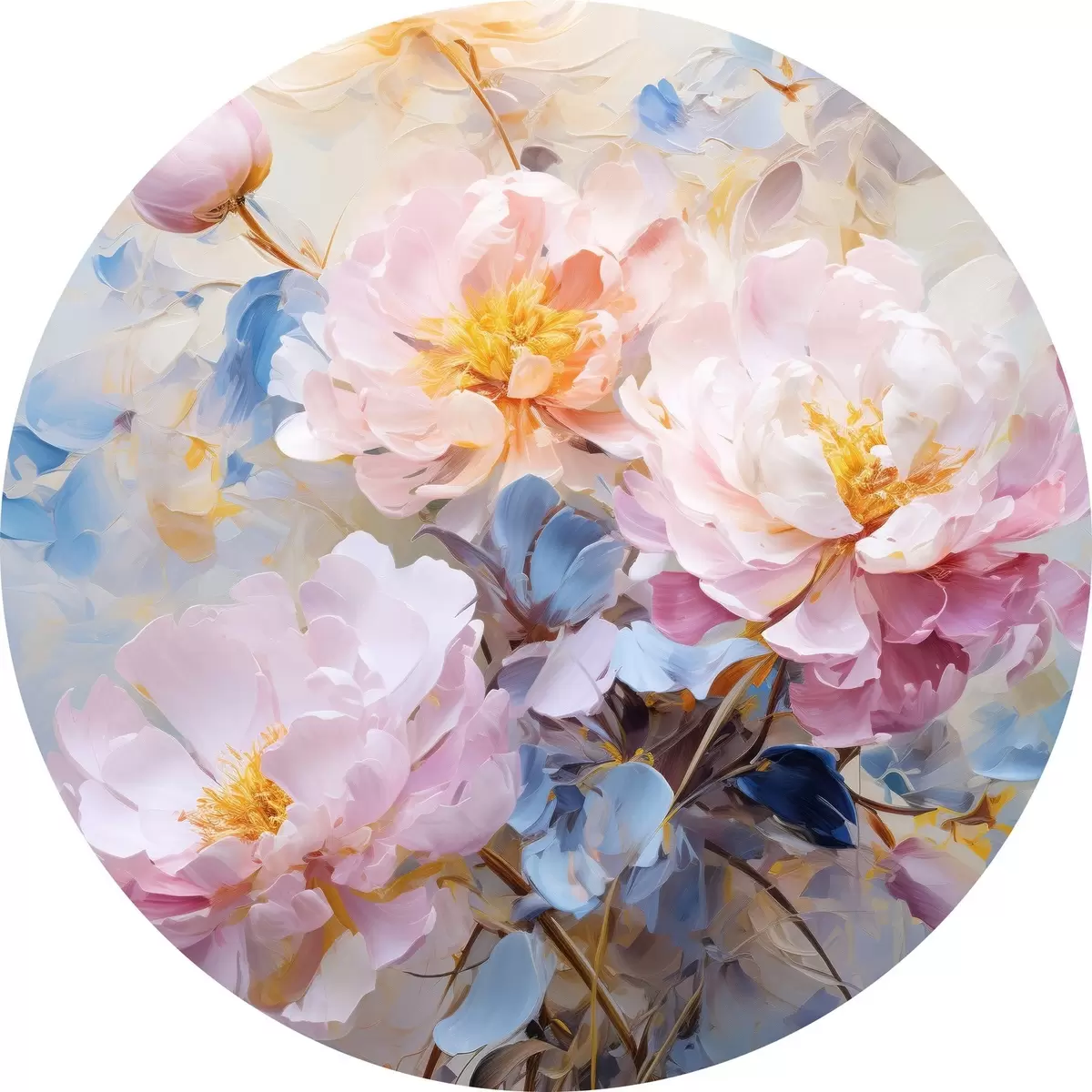 Tableaux ronds Fleurs abstraites : tons roses et bleus r45652