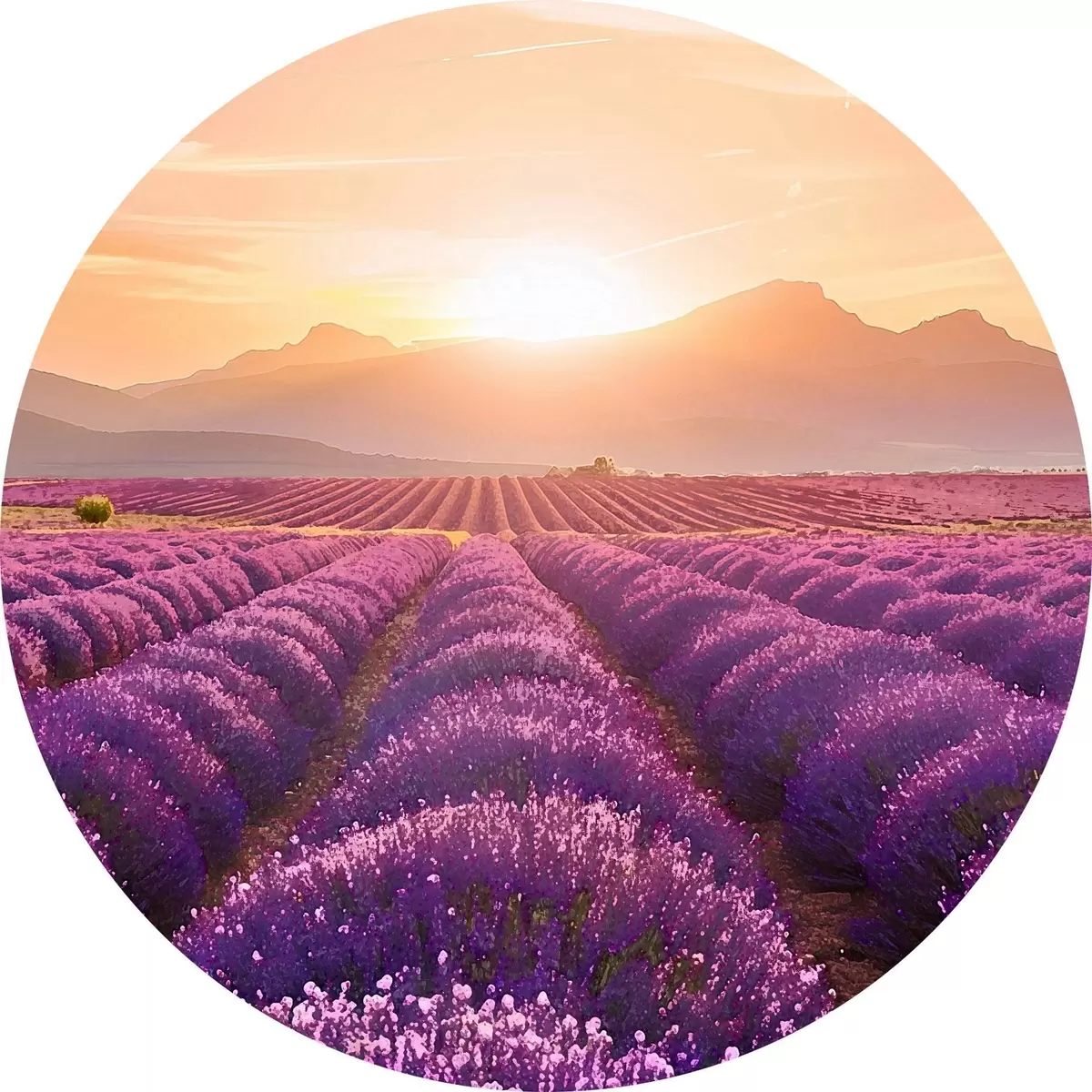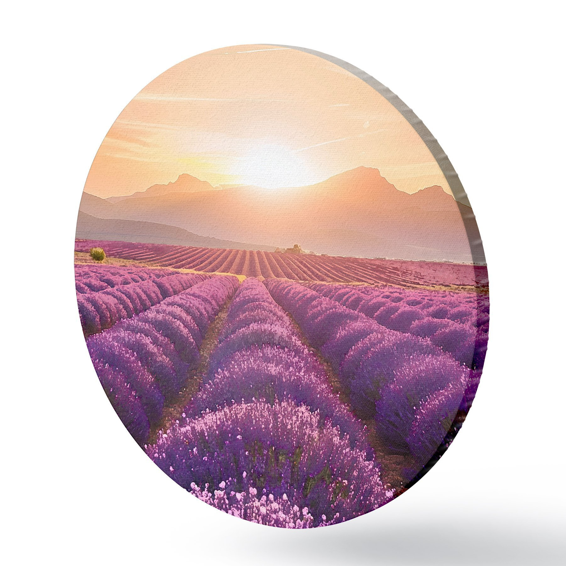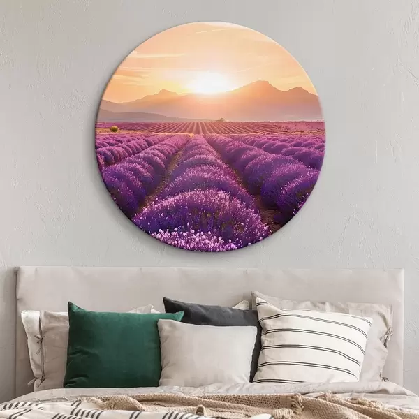 Tableaux ronds Coucher de soleil dans un champ de lavande r45663