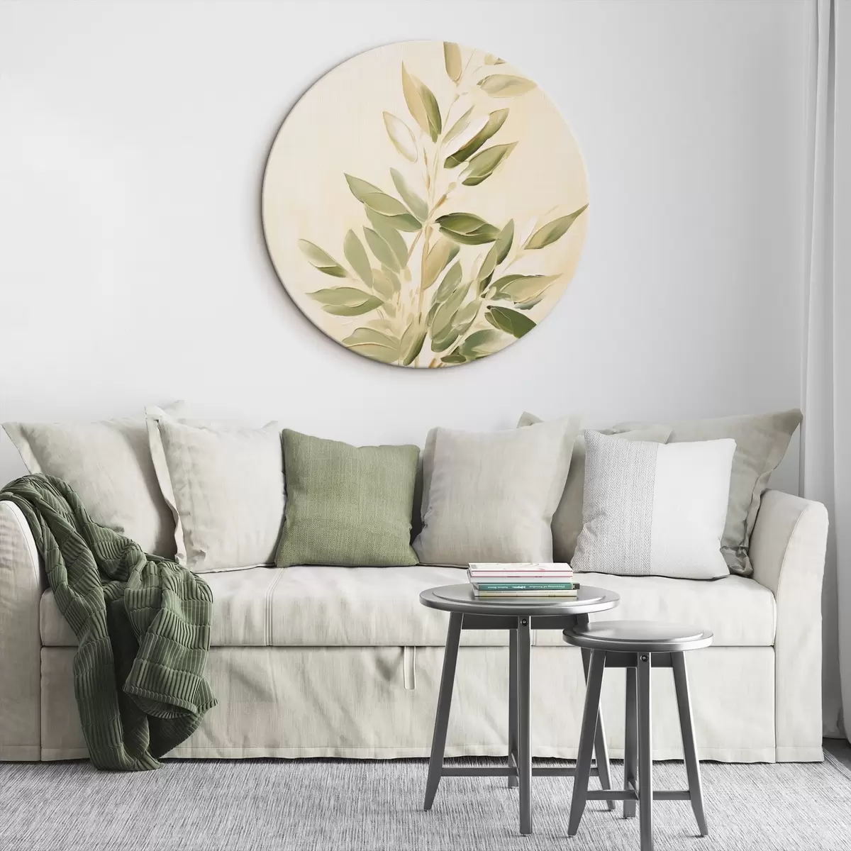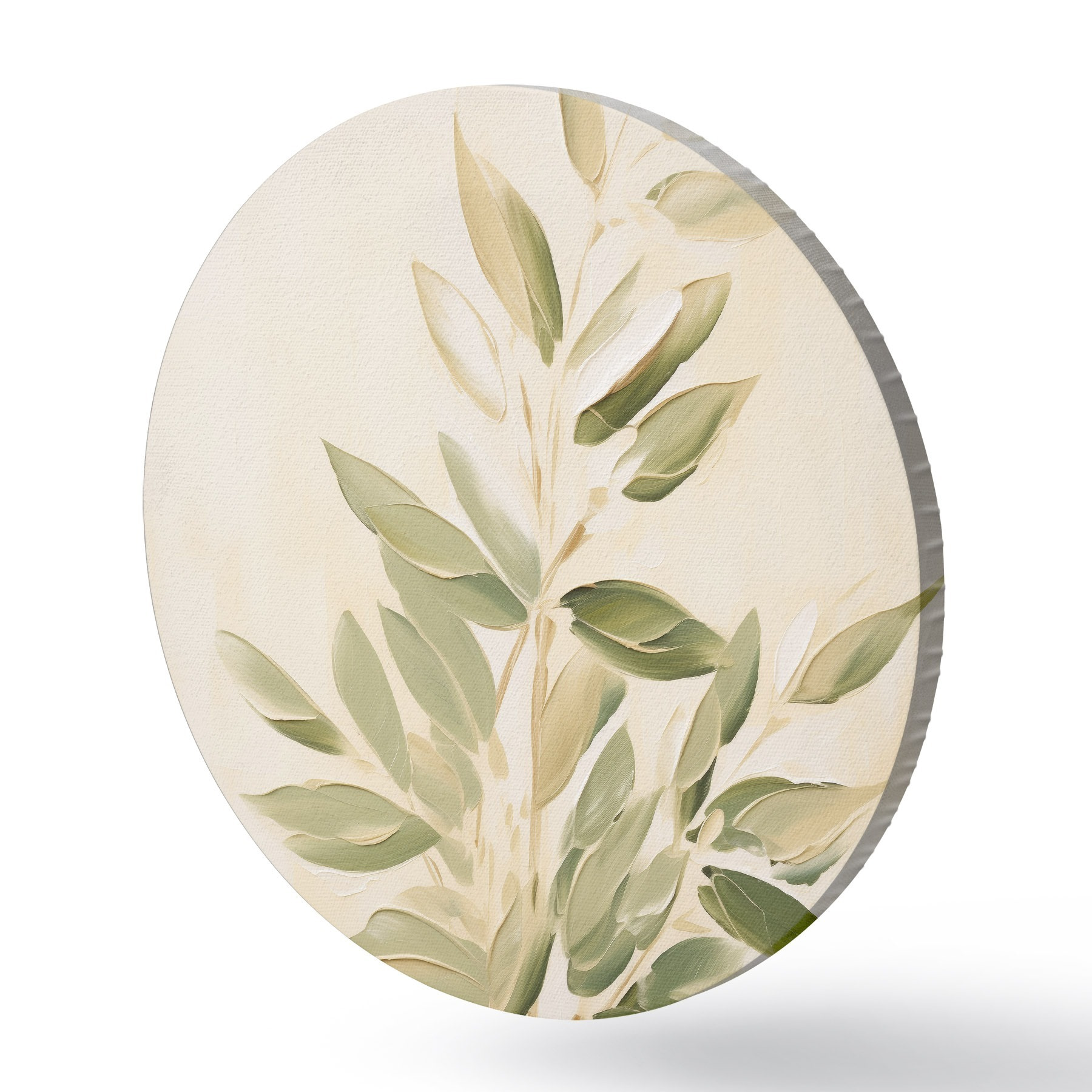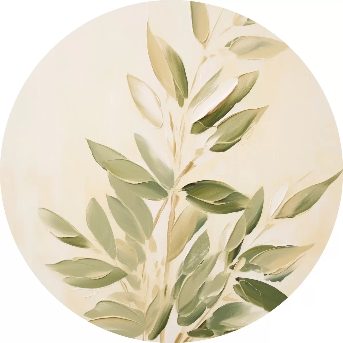 Tableaux ronds Branche avec des feuilles vertes sur un fond beige clair r45689