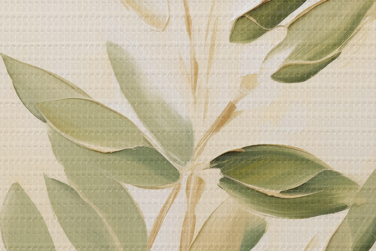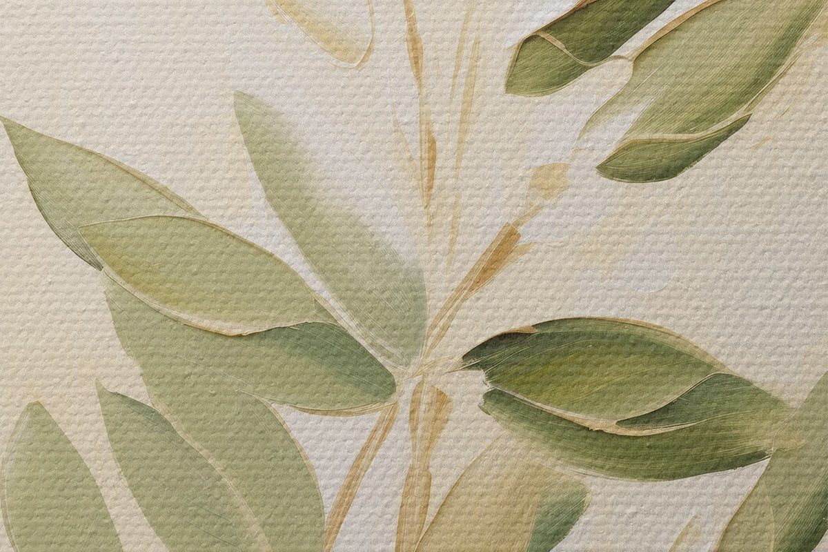Image Branche avec des feuilles vertes sur un fond beige clair Nr r45689