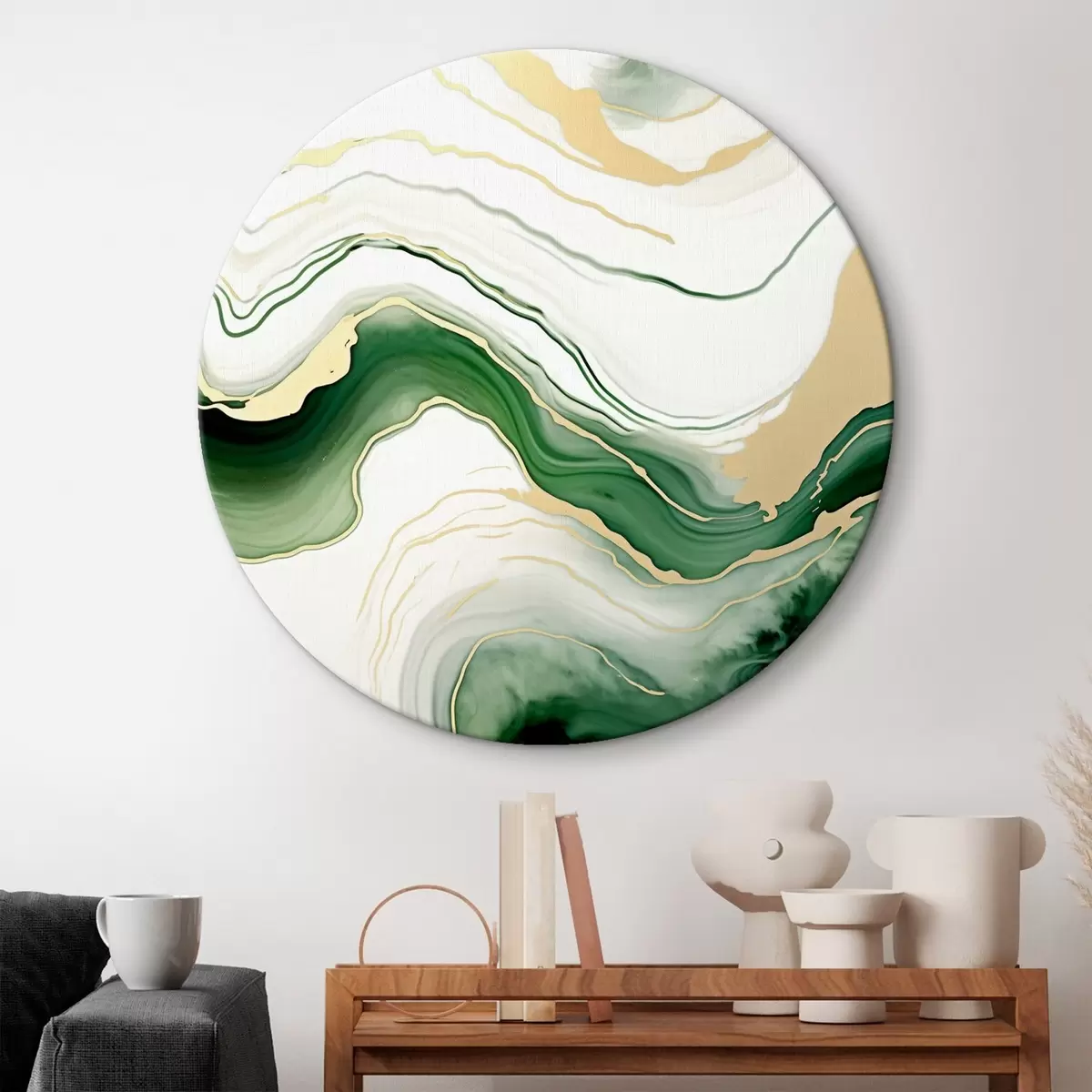 Tableaux ronds Motifs de marbre vert clair et orange r45696