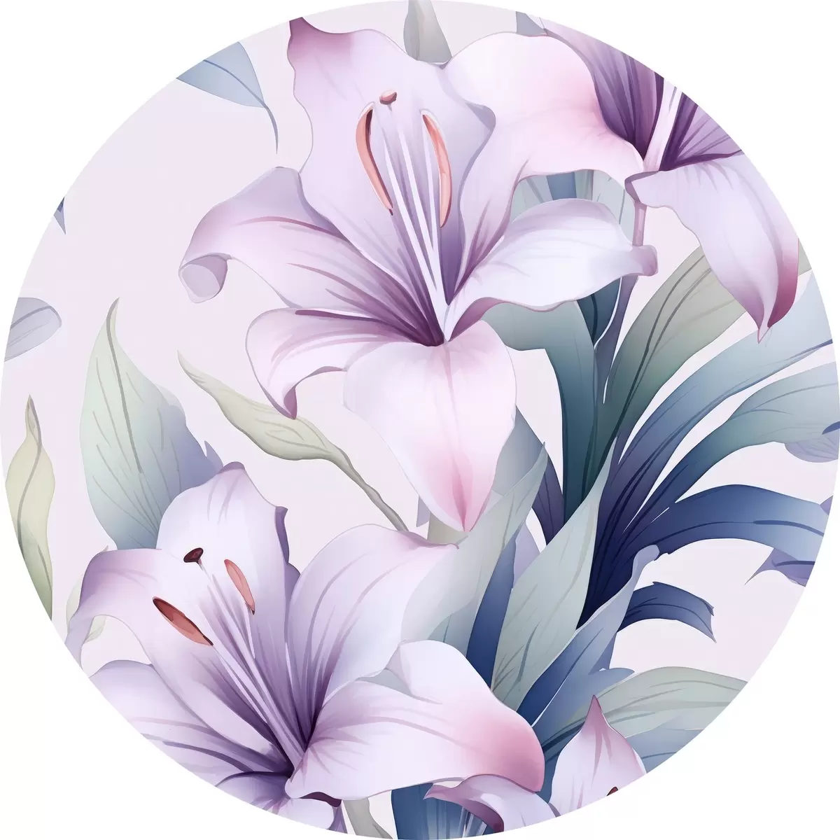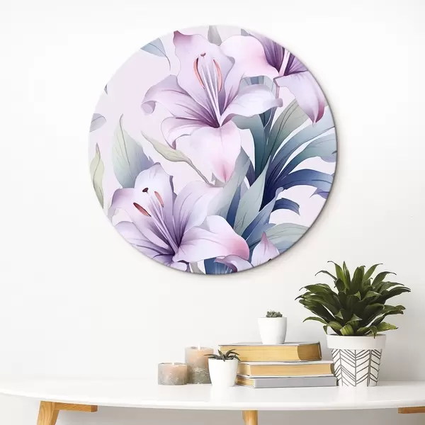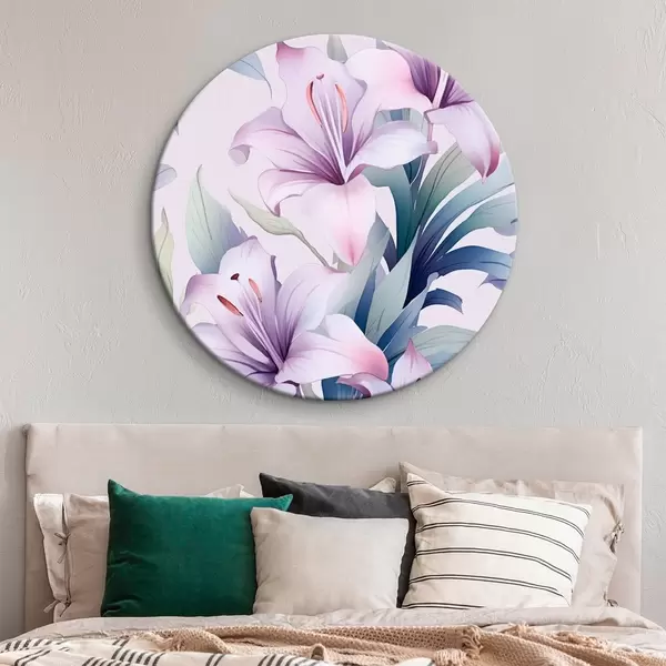 Tableaux ronds Grands lys rose-pourpre avec des feuilles vertes r45698