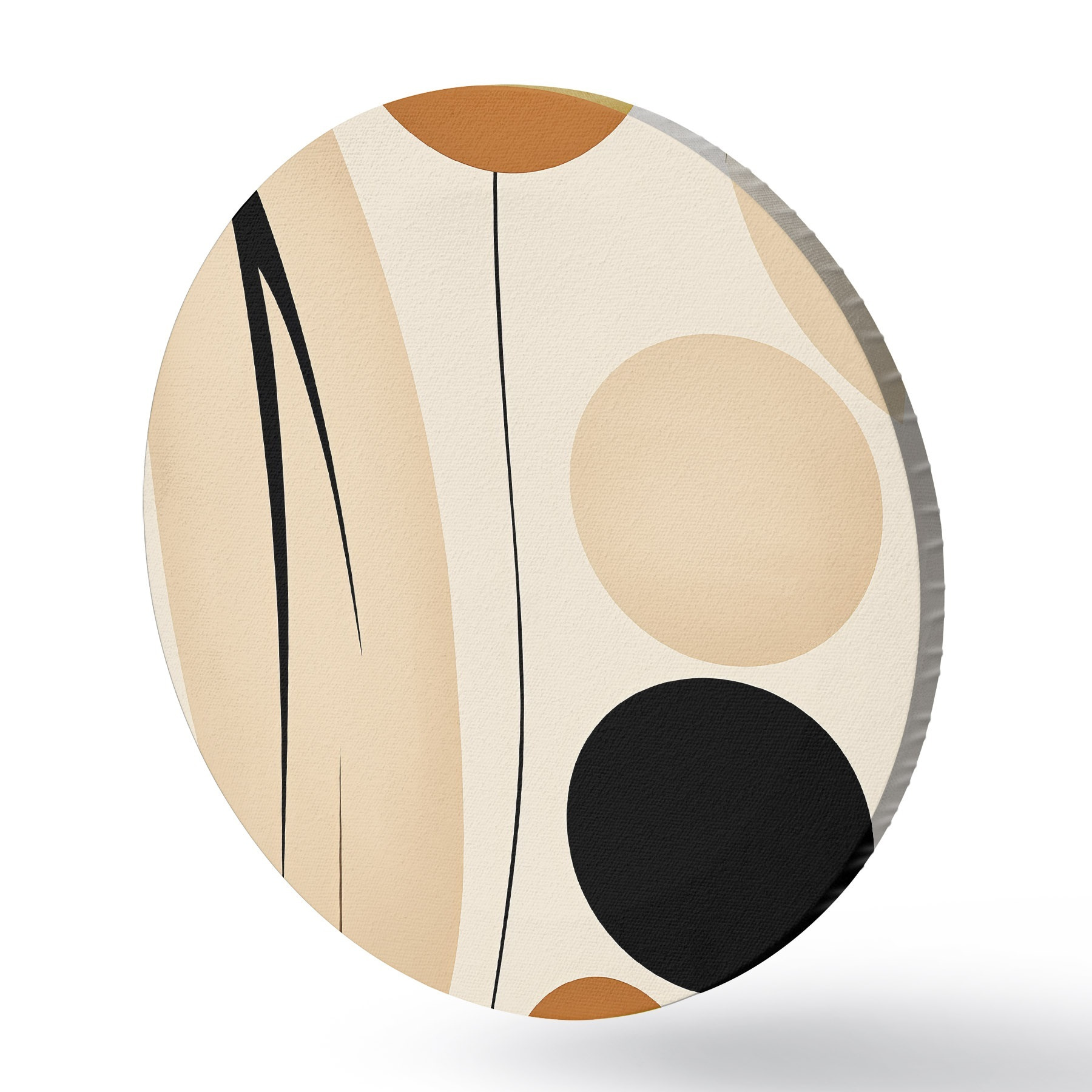 Tableaux ronds Composition abstraite avec des cercles noirs et orange r45700