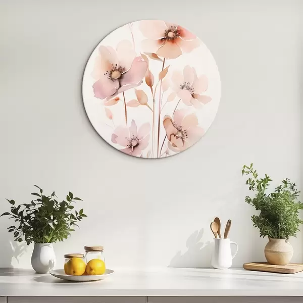 Tableaux ronds Fleurs roses aquarelles sur tiges fines r45701