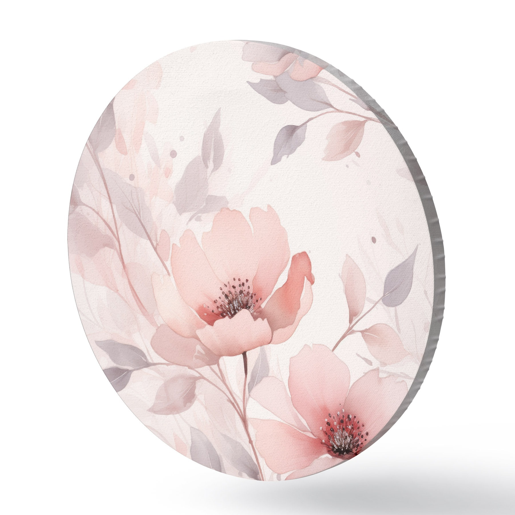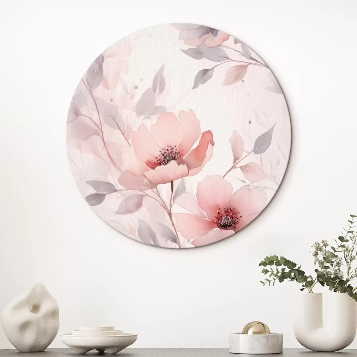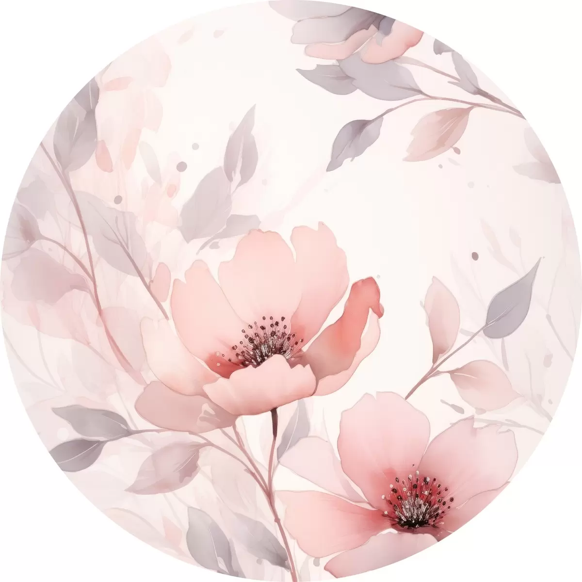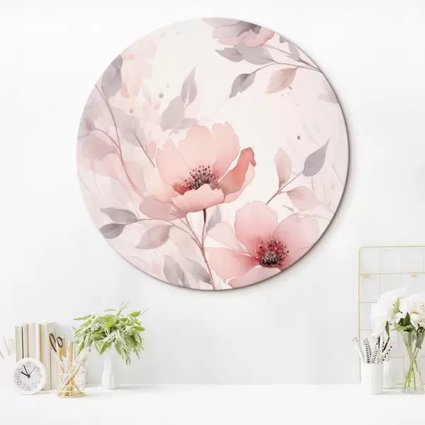 Tableaux ronds Fleurs délicates rose-gris avec effet aquarelle r45702