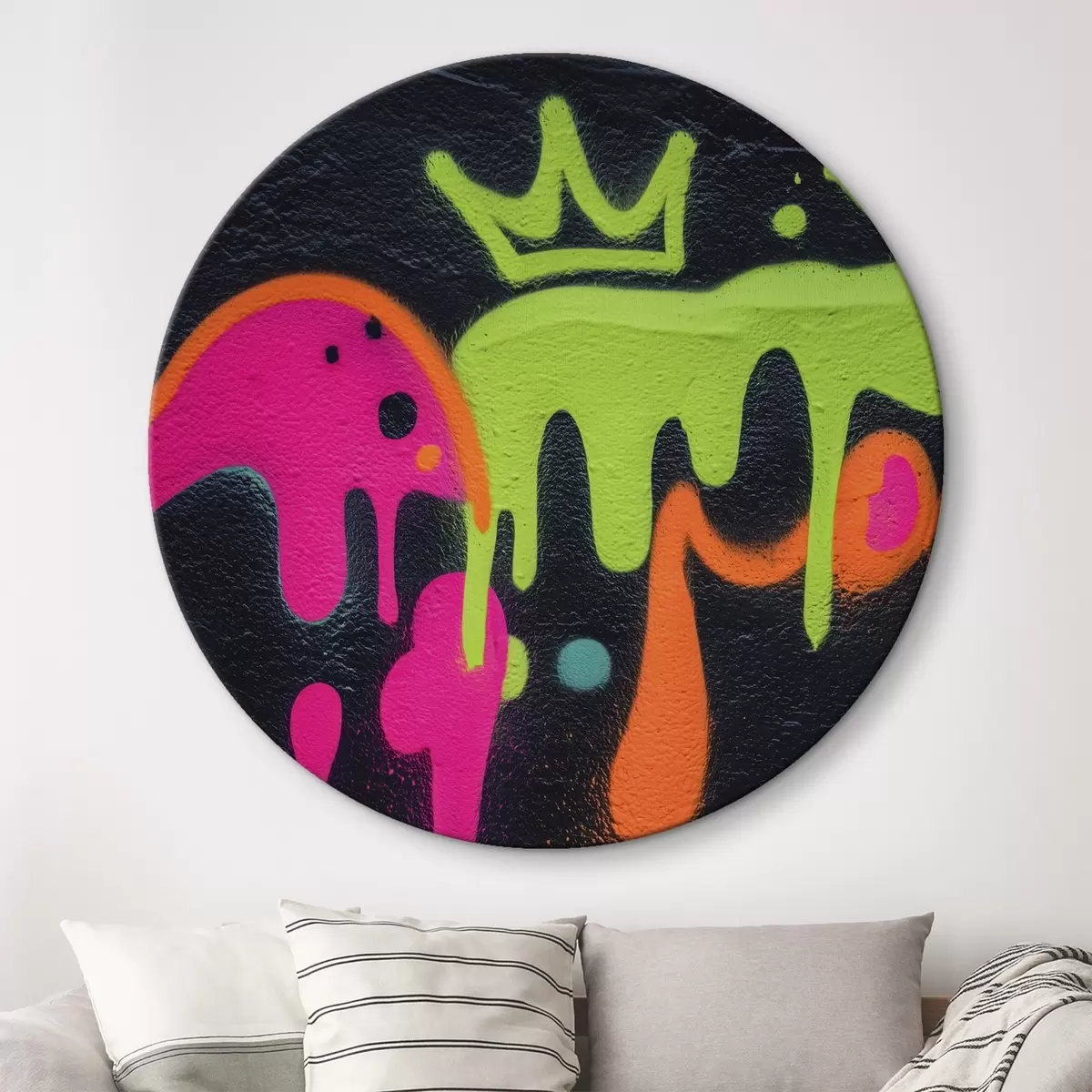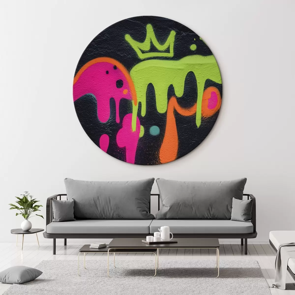 Tableaux ronds graffiti lumineux sur fond sombre r45716