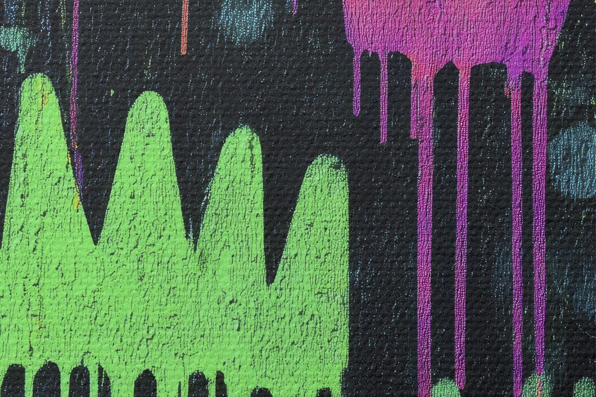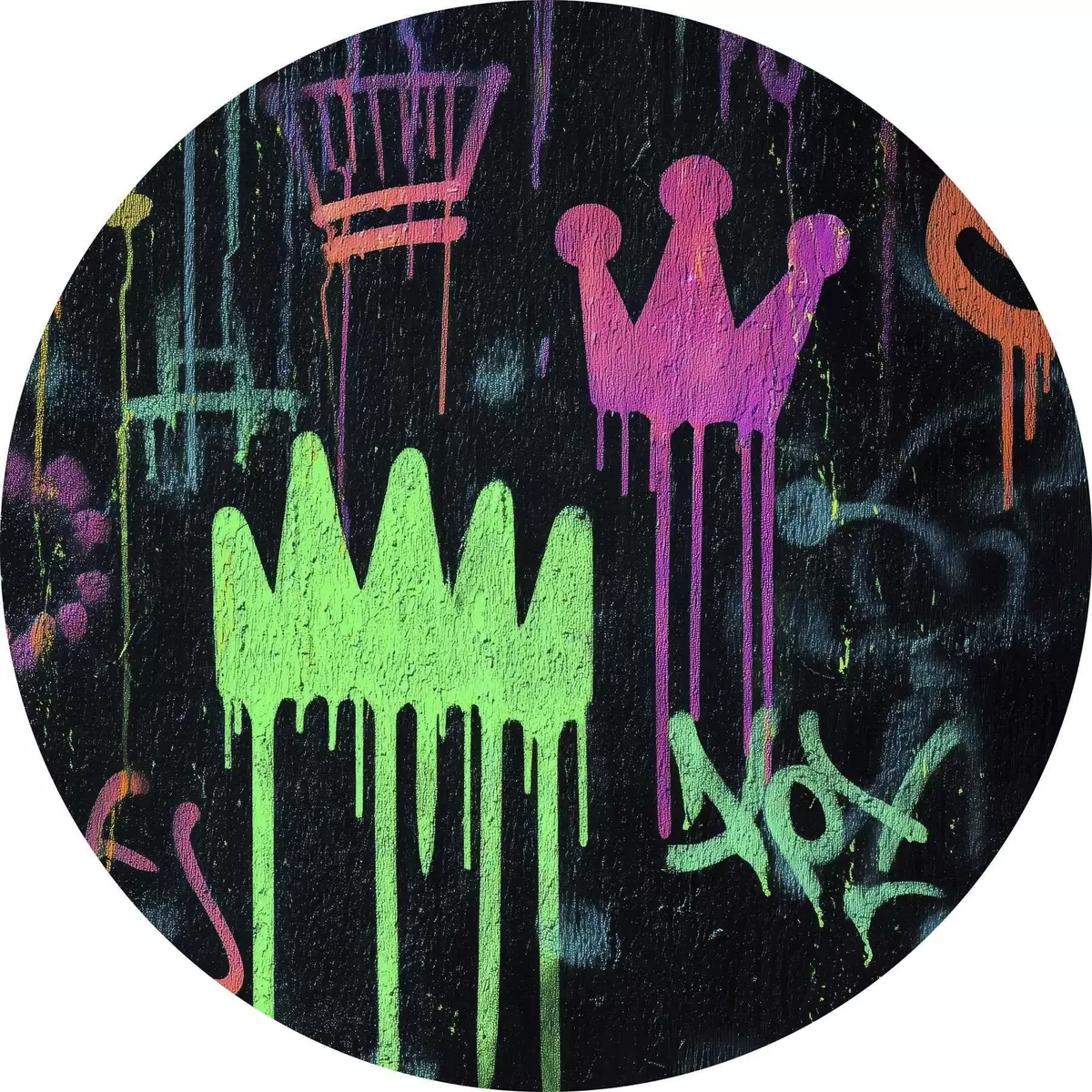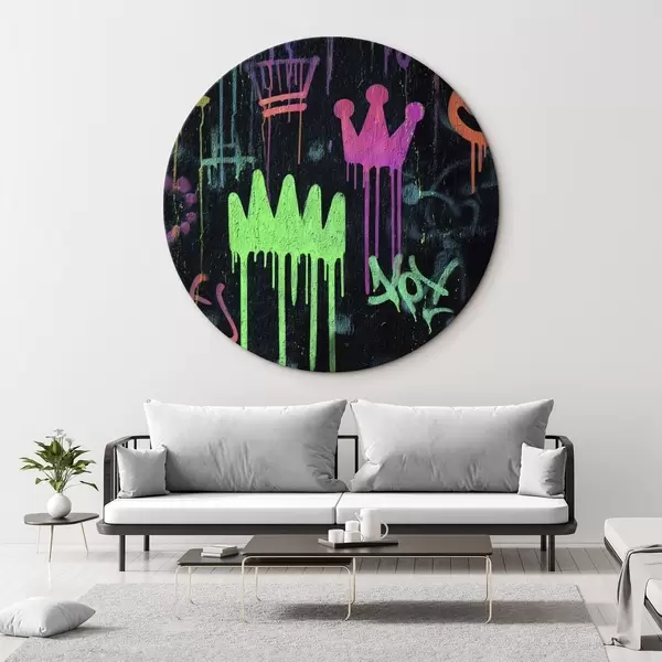 Tableaux ronds graffiti lumineux sur fond sombre r45718