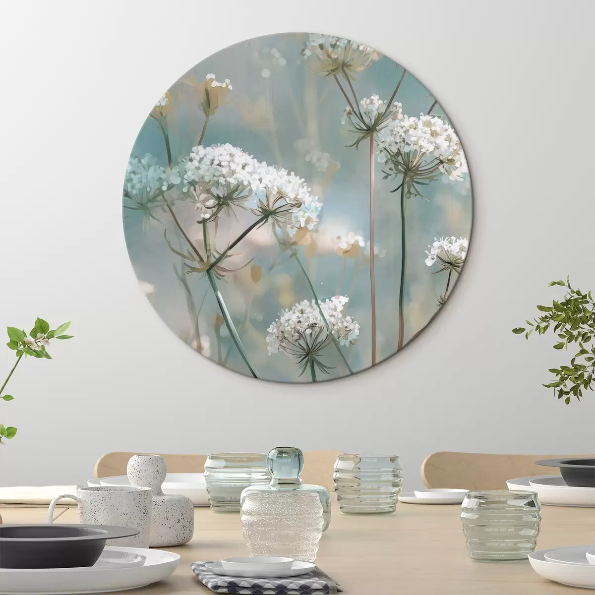 Tableaux ronds Fleurs de Queen Anne's Lace peintes à l'aquarelle sur fond bleu r45721
