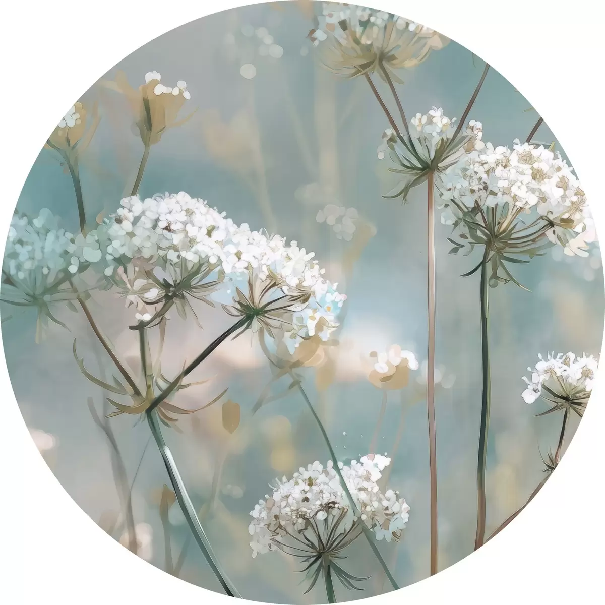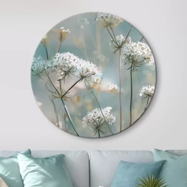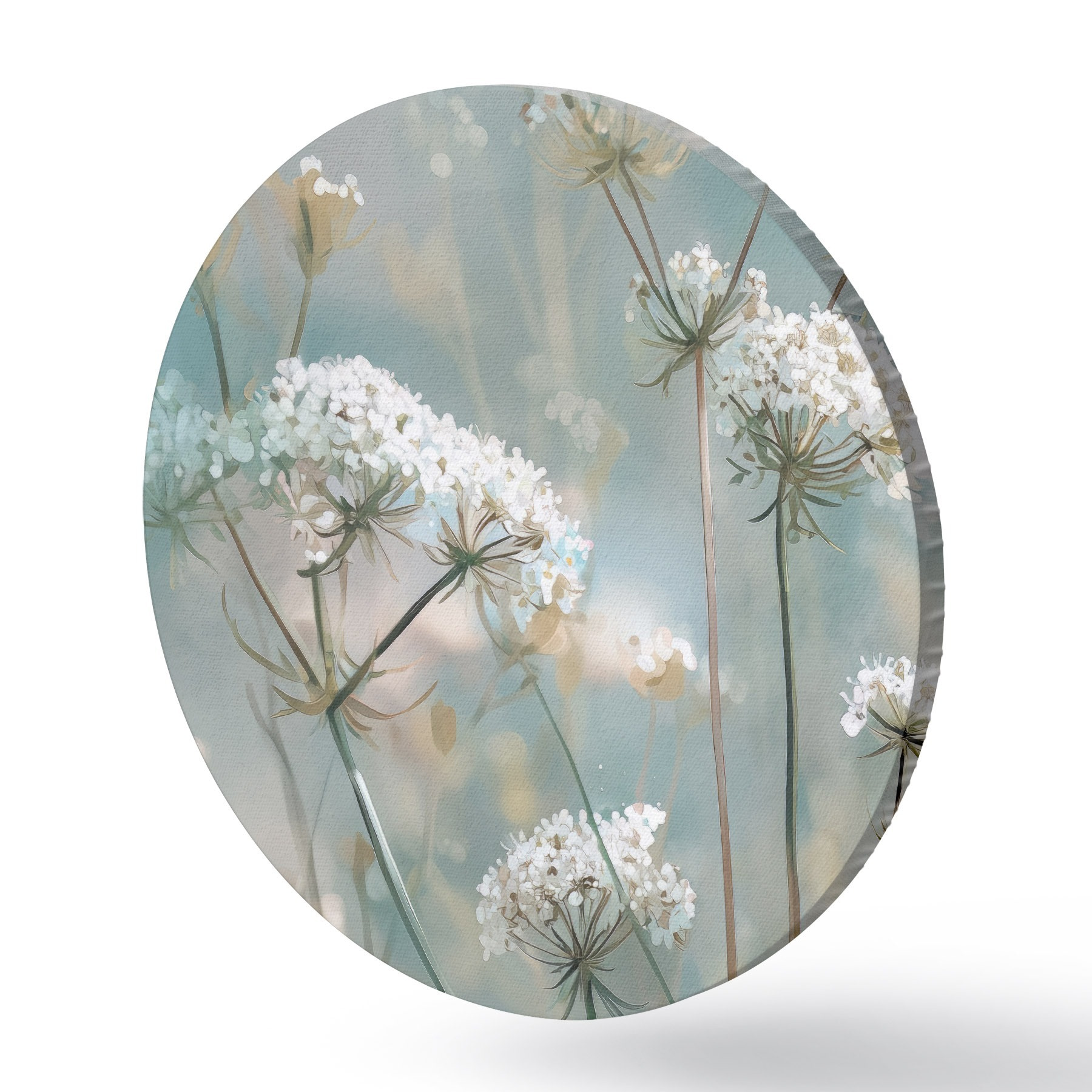Tableaux ronds Fleurs de Queen Anne's Lace peintes à l'aquarelle sur fond bleu r45721