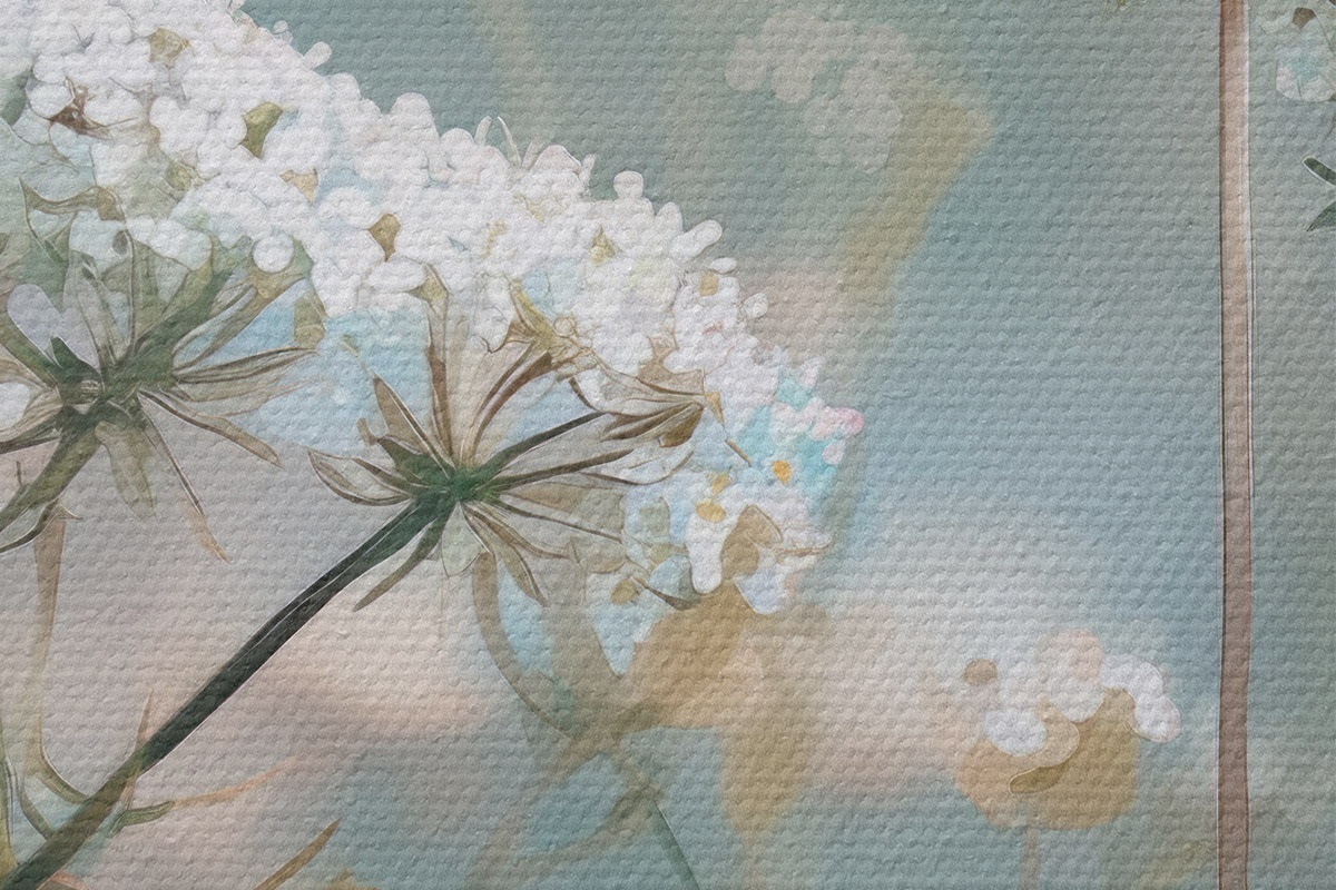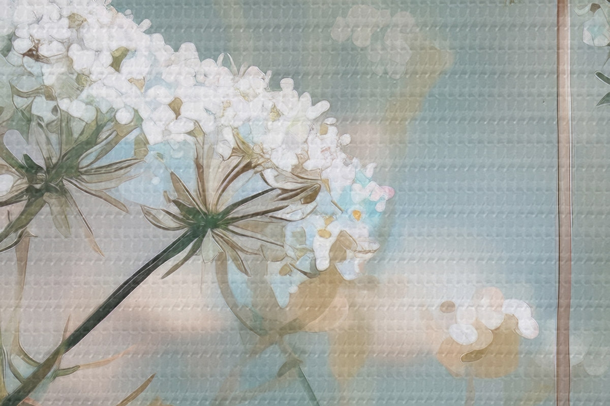 Image Fleurs de Queen Anne's Lace peintes à l'aquarelle sur fond bleu Nr r45721