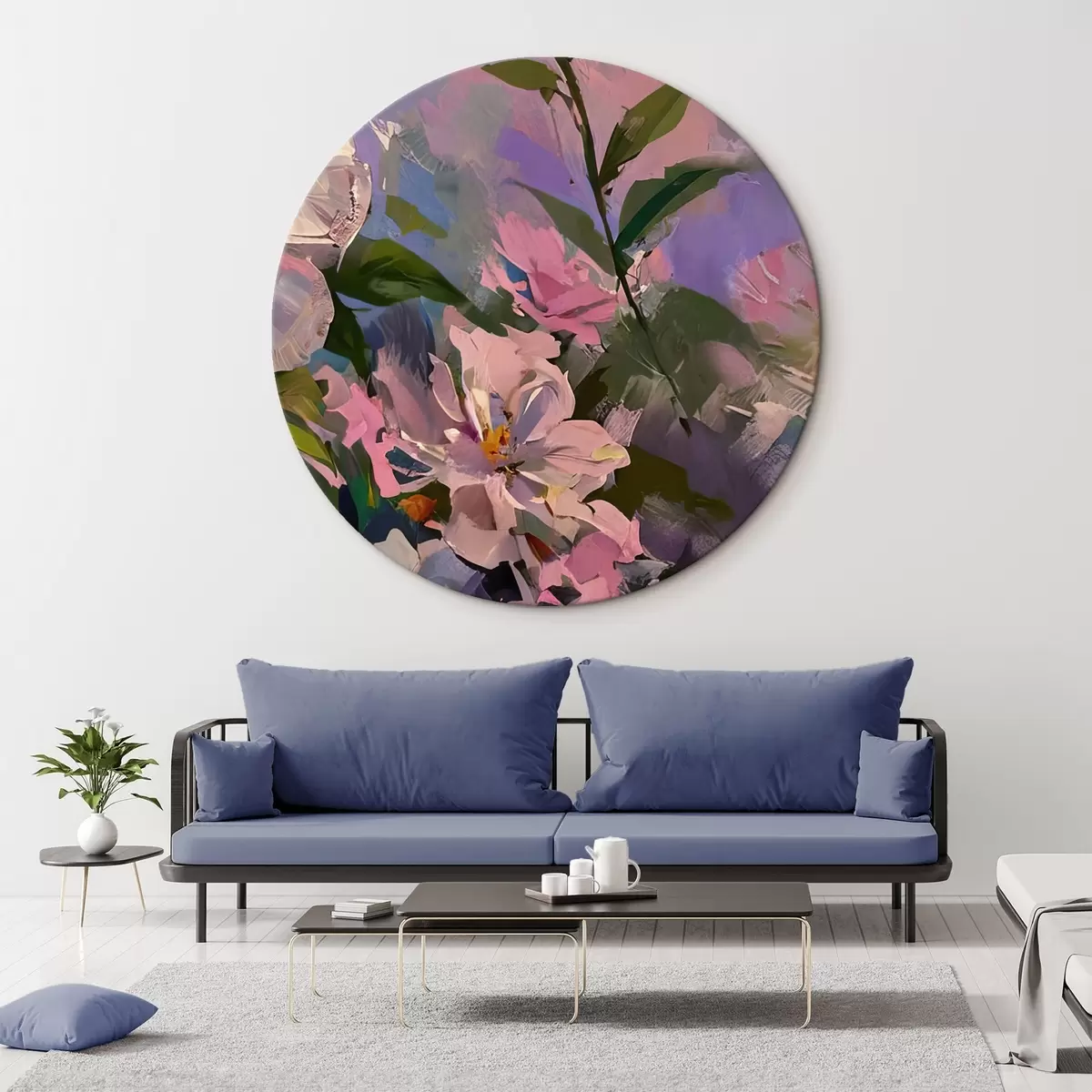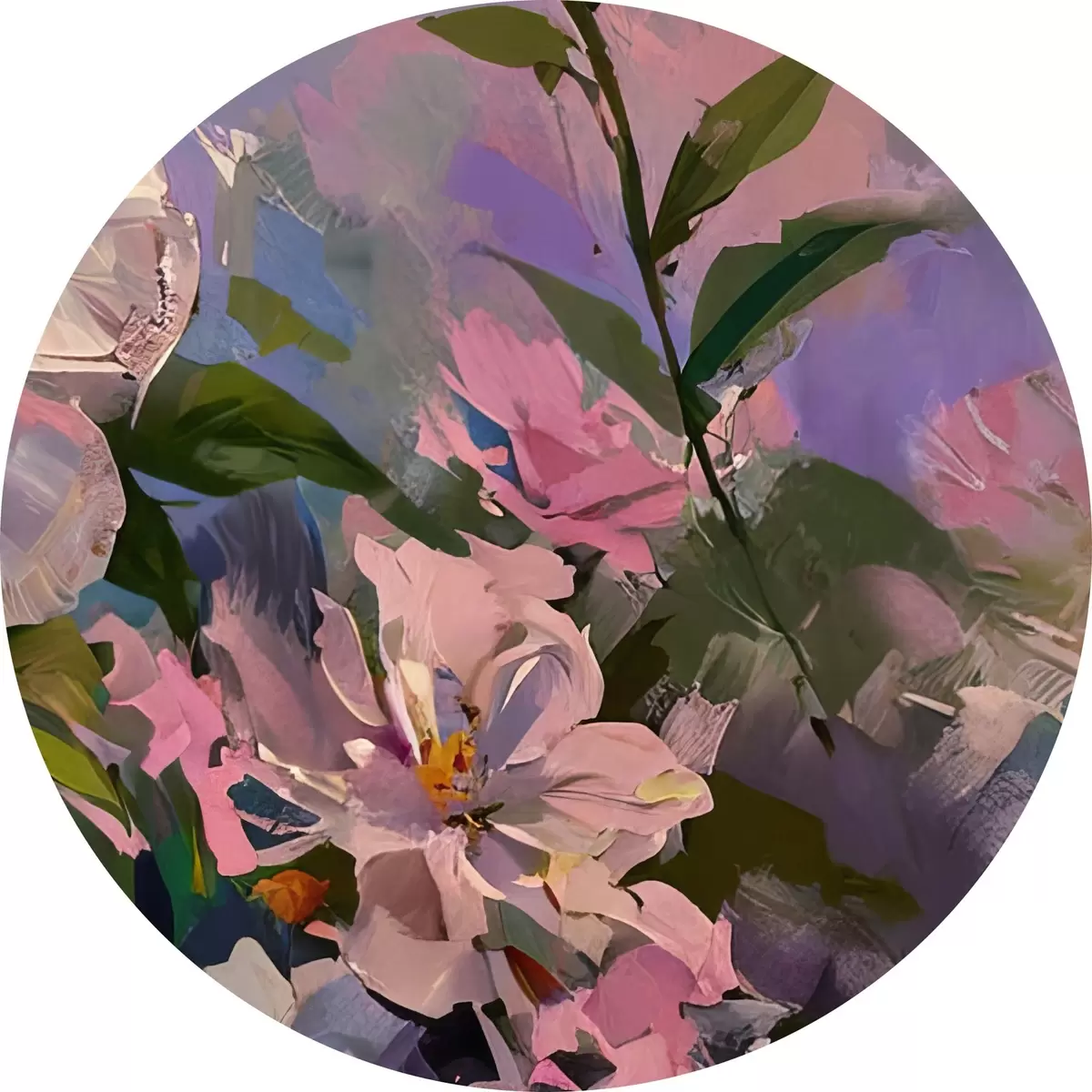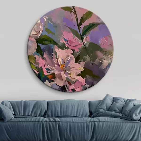 Tableaux ronds fleurs roses dans le style de la peinture à l'huile r45724