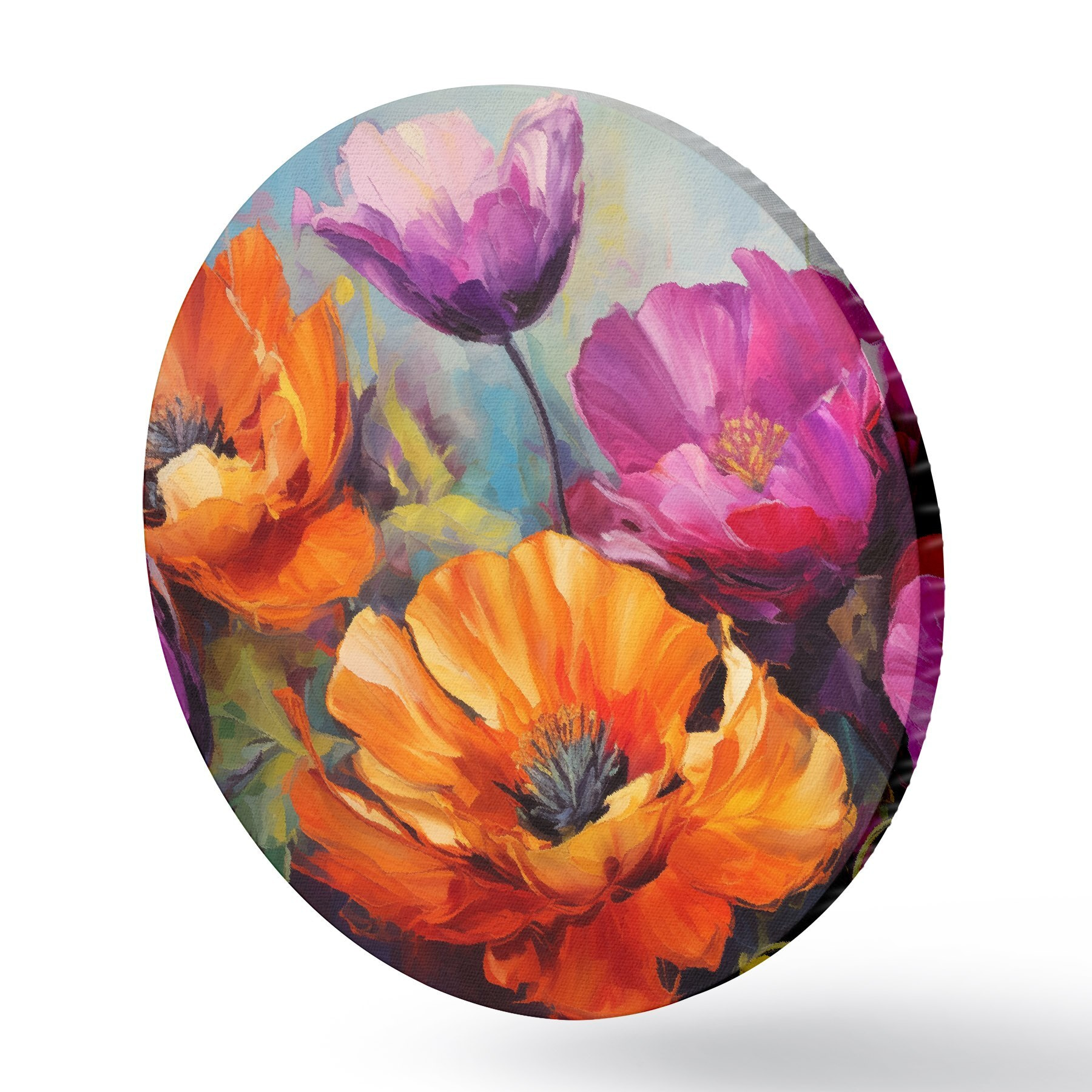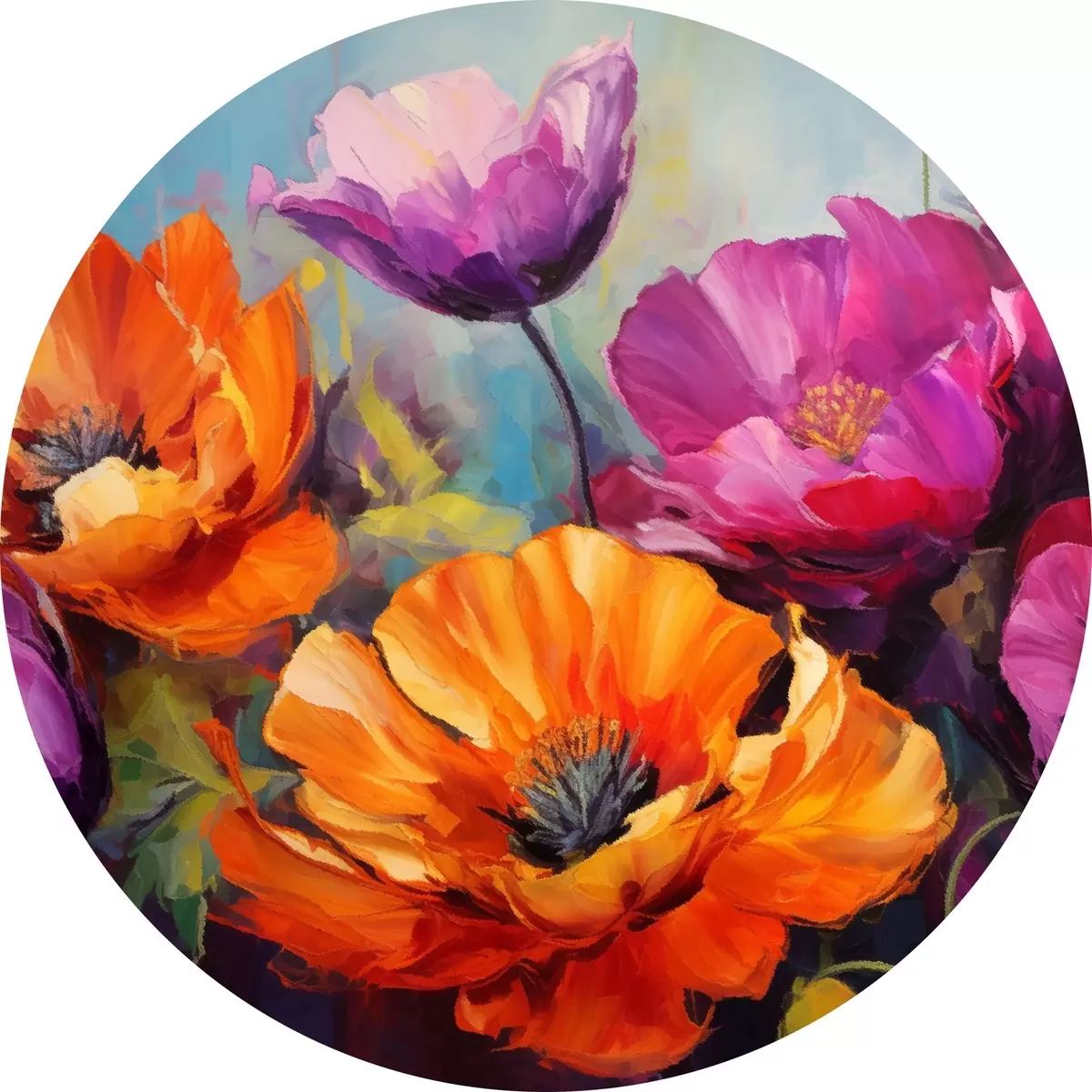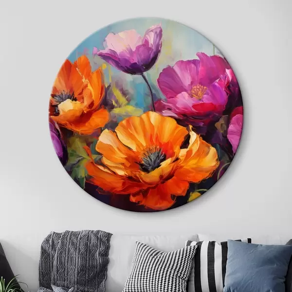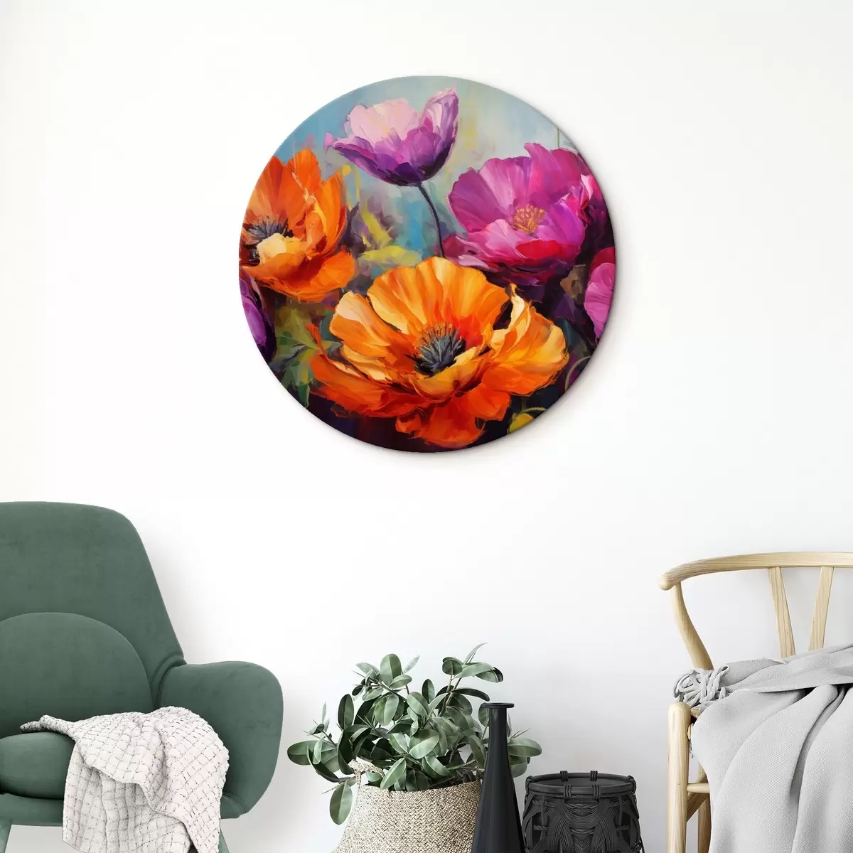 Tableaux ronds Coquelicots lumineux dans des tons violets et orange r45804