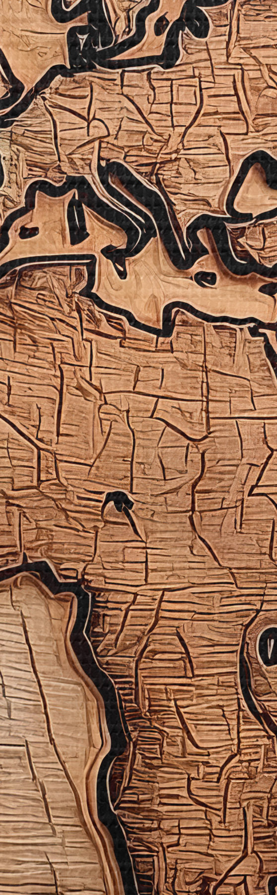 Tableaux ronds Carte du monde gravée sur bois r45805