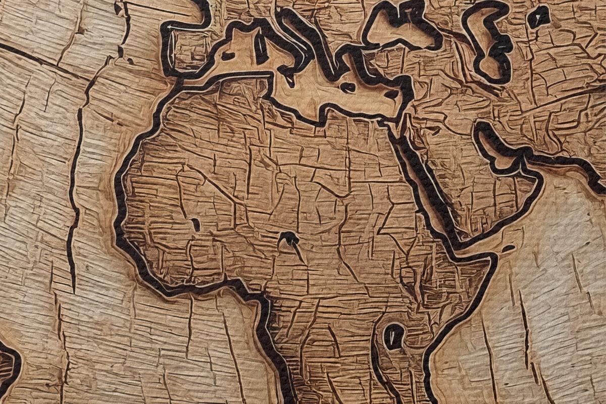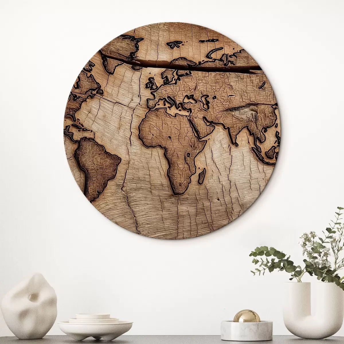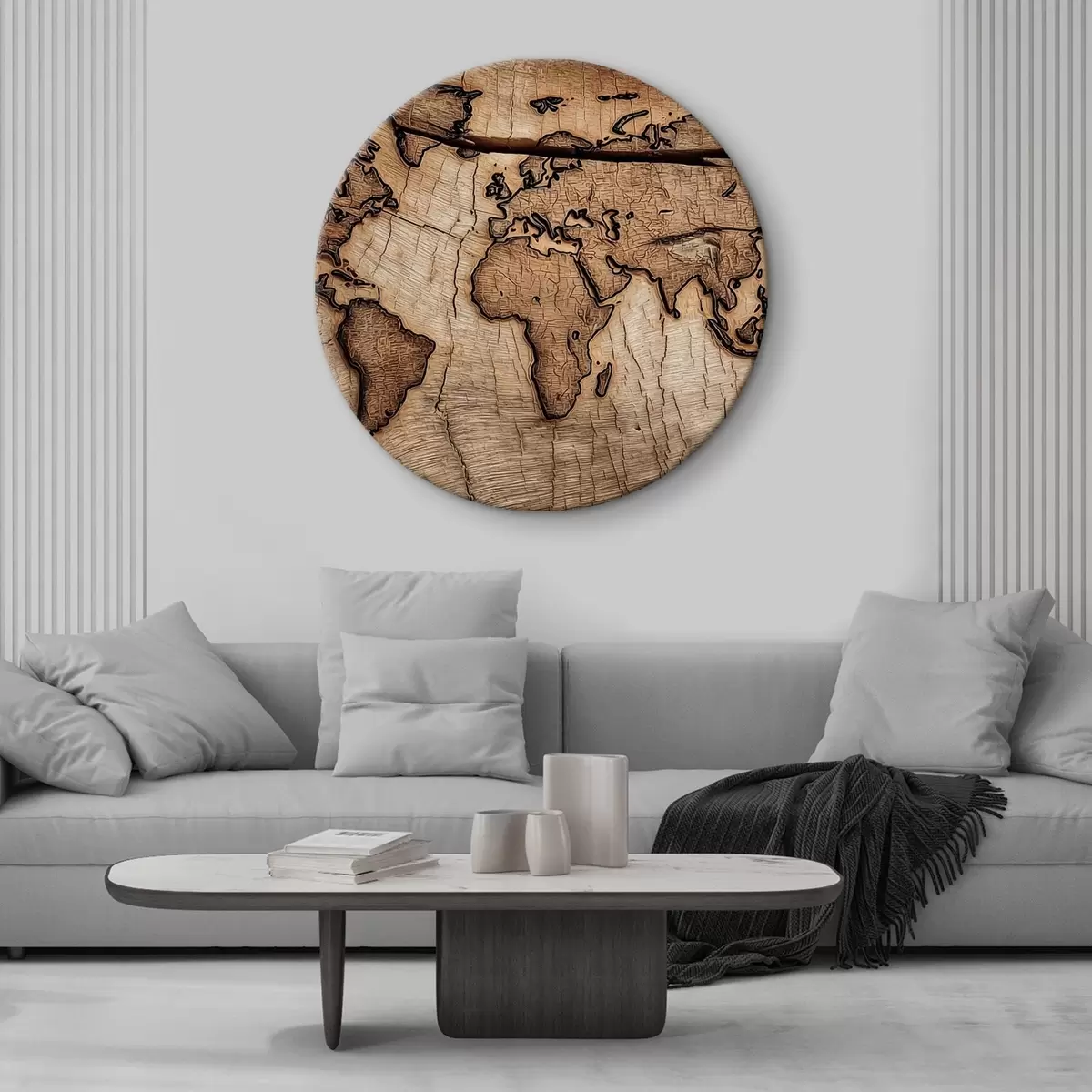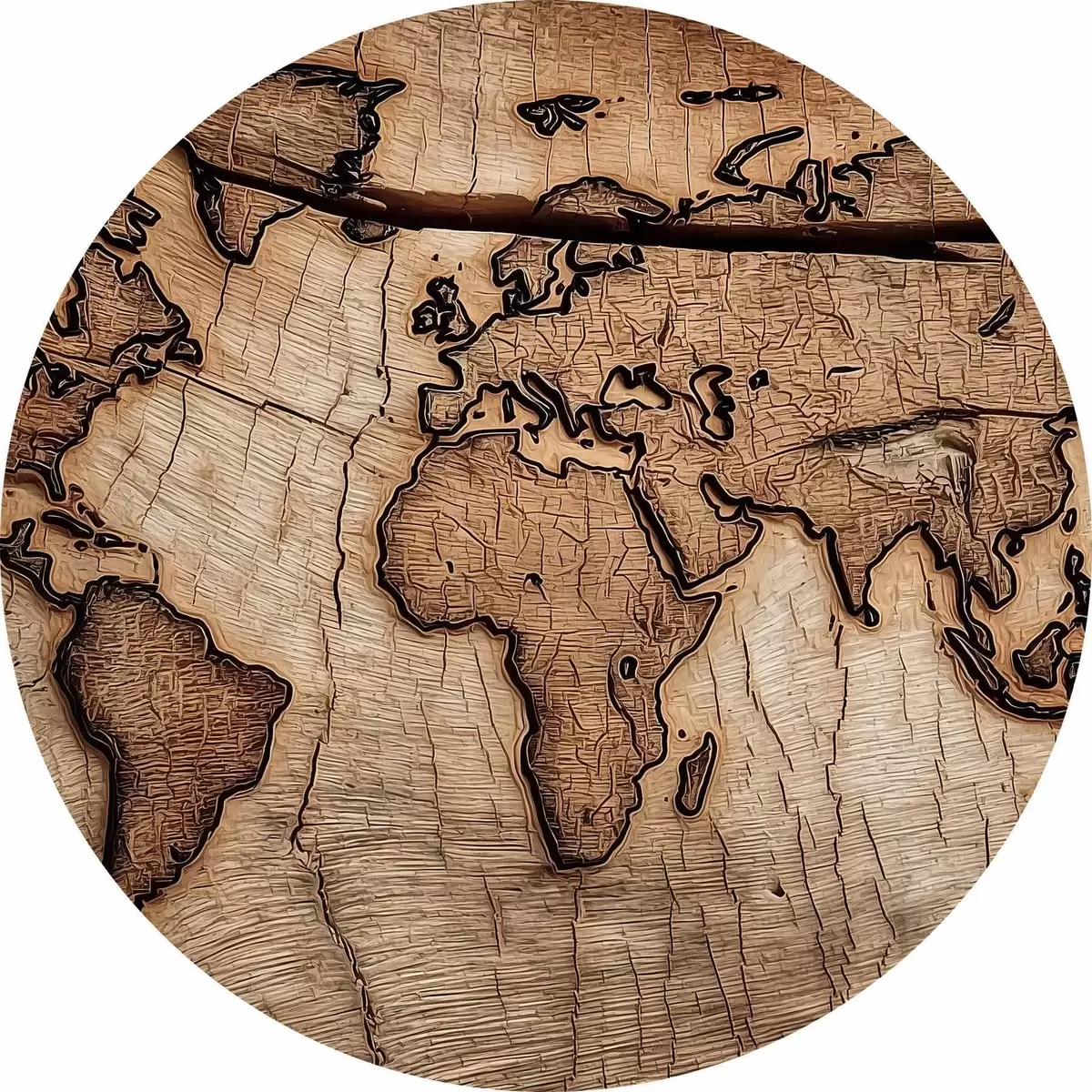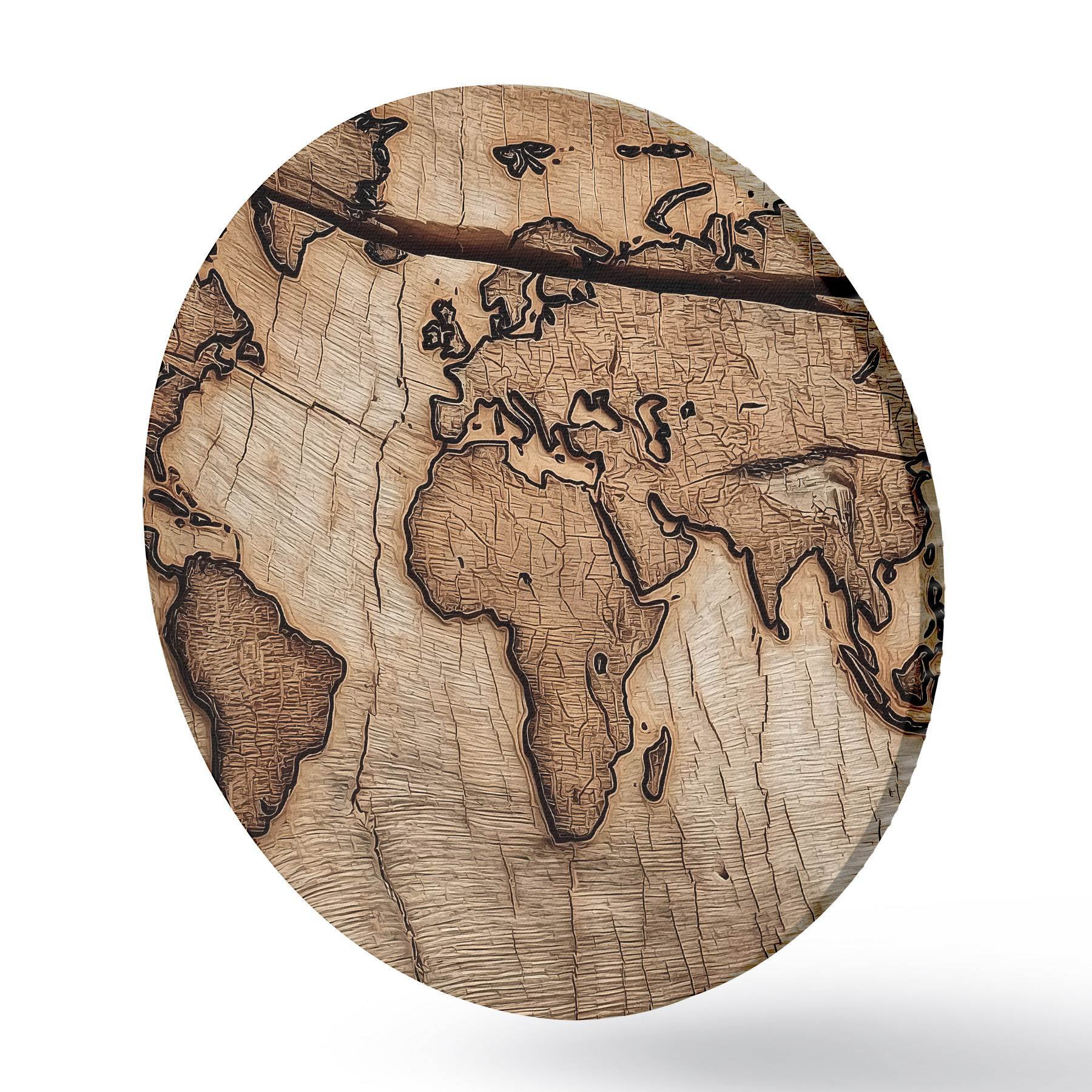 Tableaux ronds Carte du monde gravée sur bois r45805