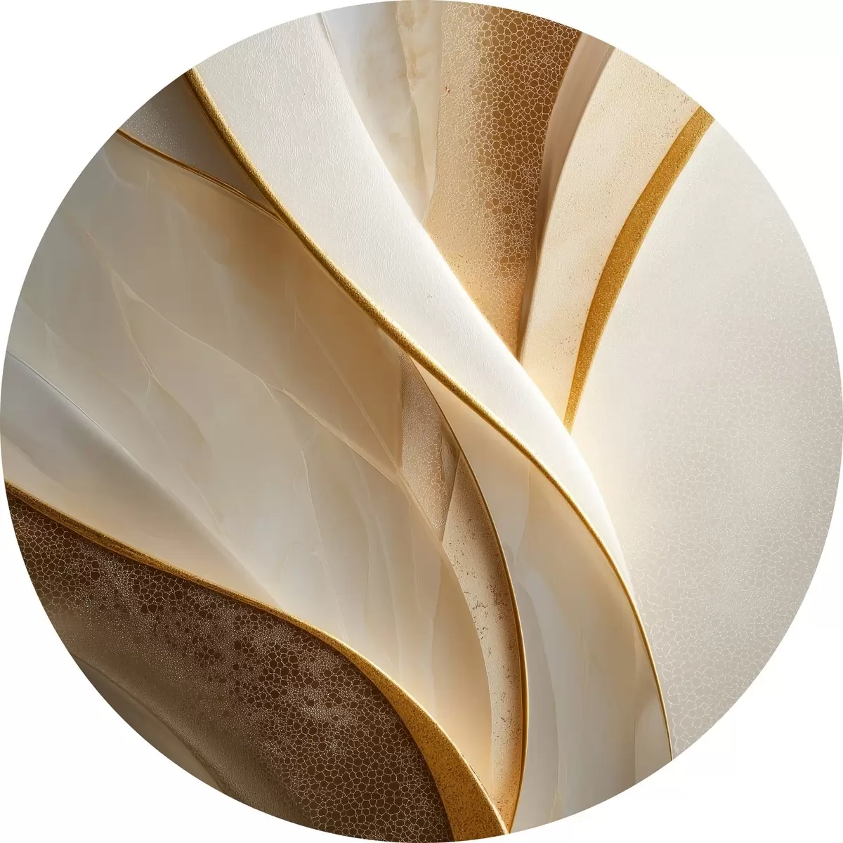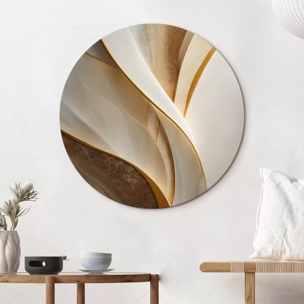 Tableaux ronds Courbes abstraites rehaussées de touches jaune-orange et beige r45807