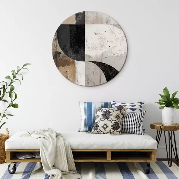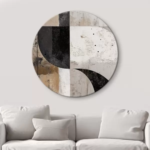 Tableaux ronds Formes géométriques dans les tons beige et noir r45811