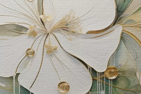 Image Une fleur blanche avec des détails jaune-orange et des feuilles vertes Nr r45815