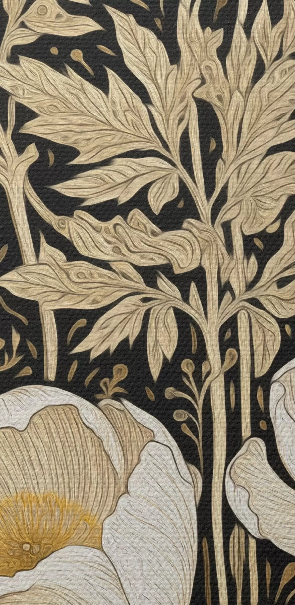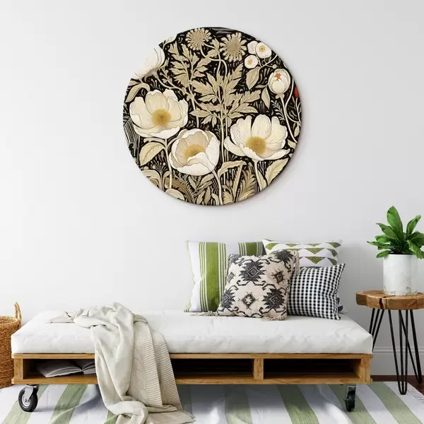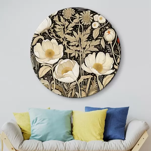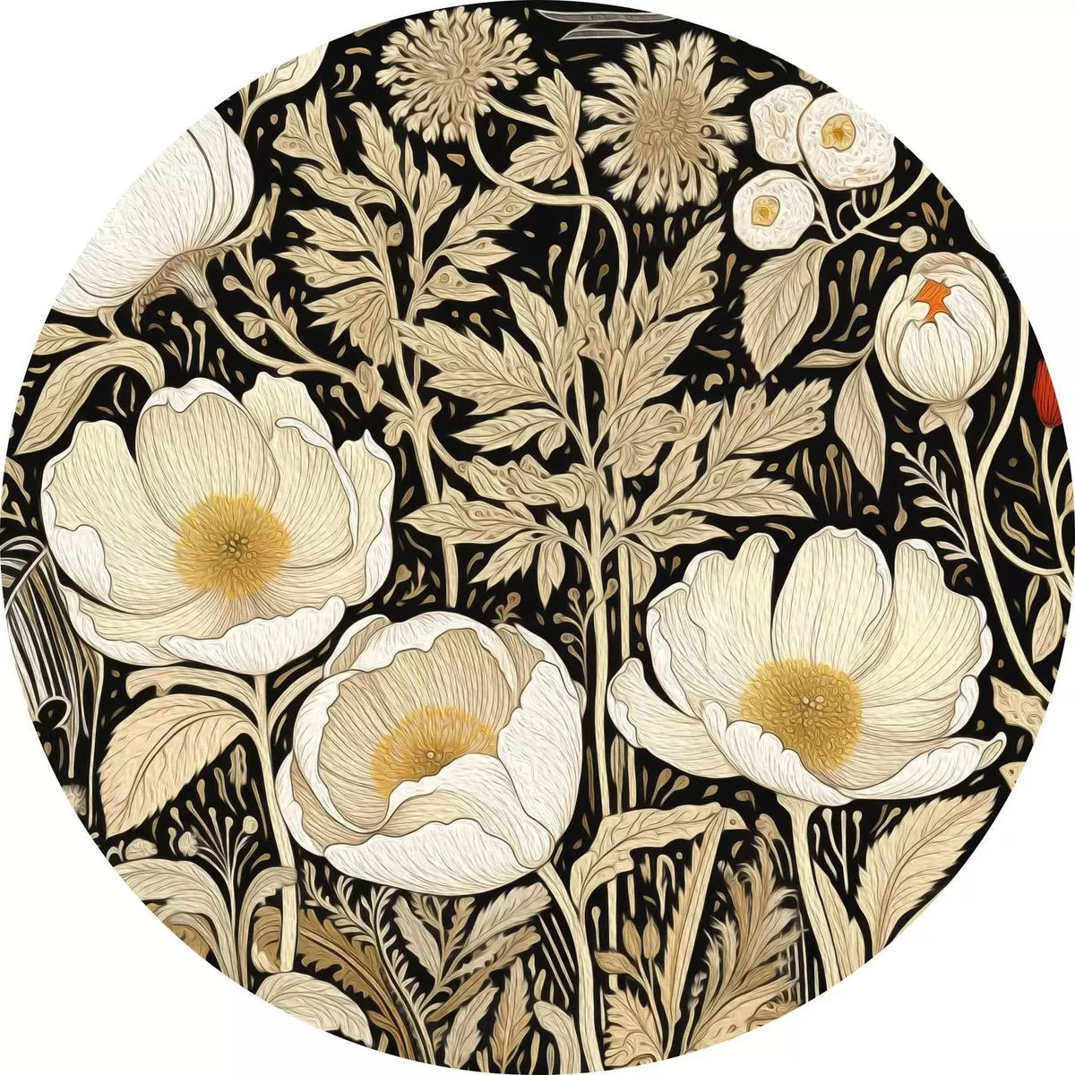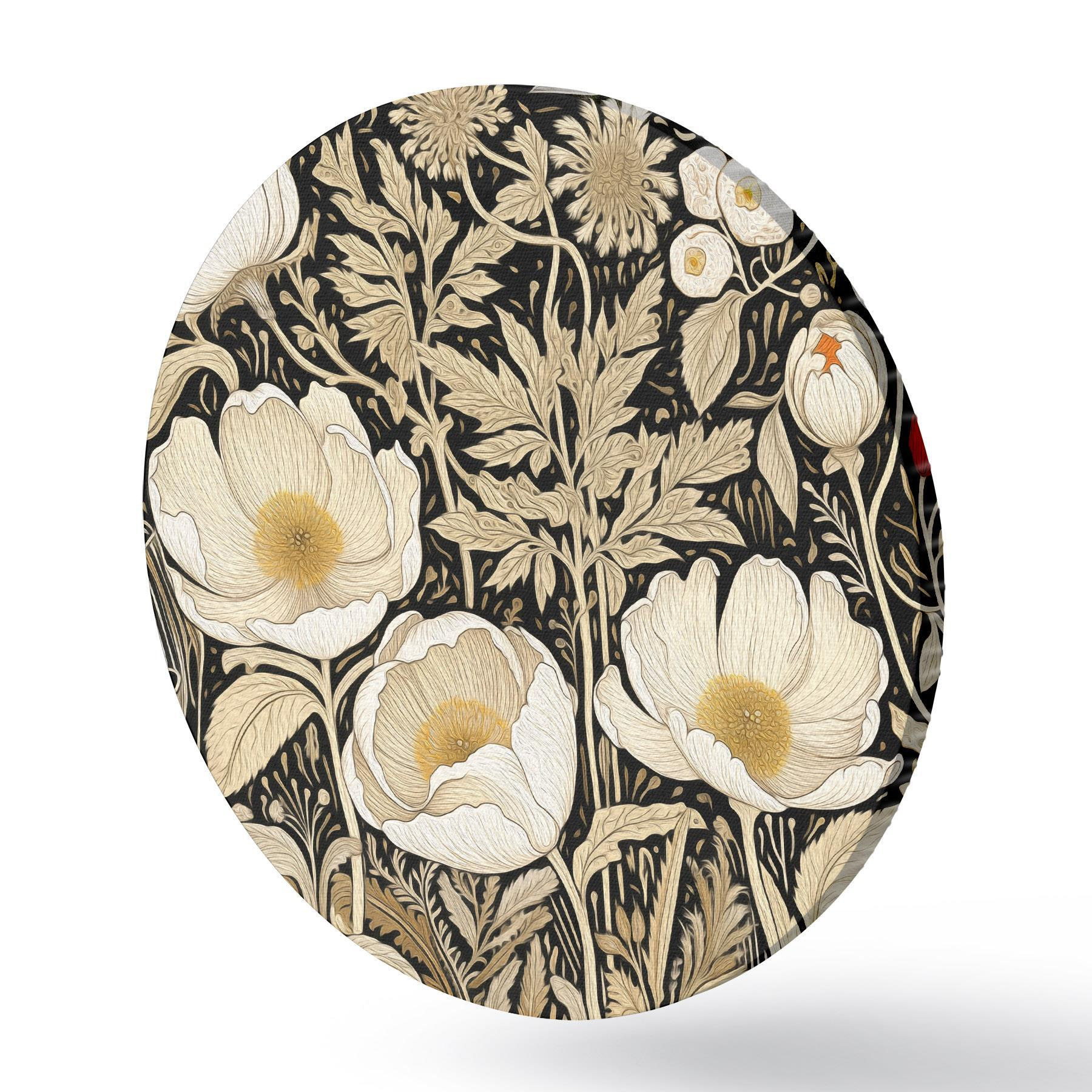 Tableaux ronds Fleurs et herbes crème sur fond noir r45816