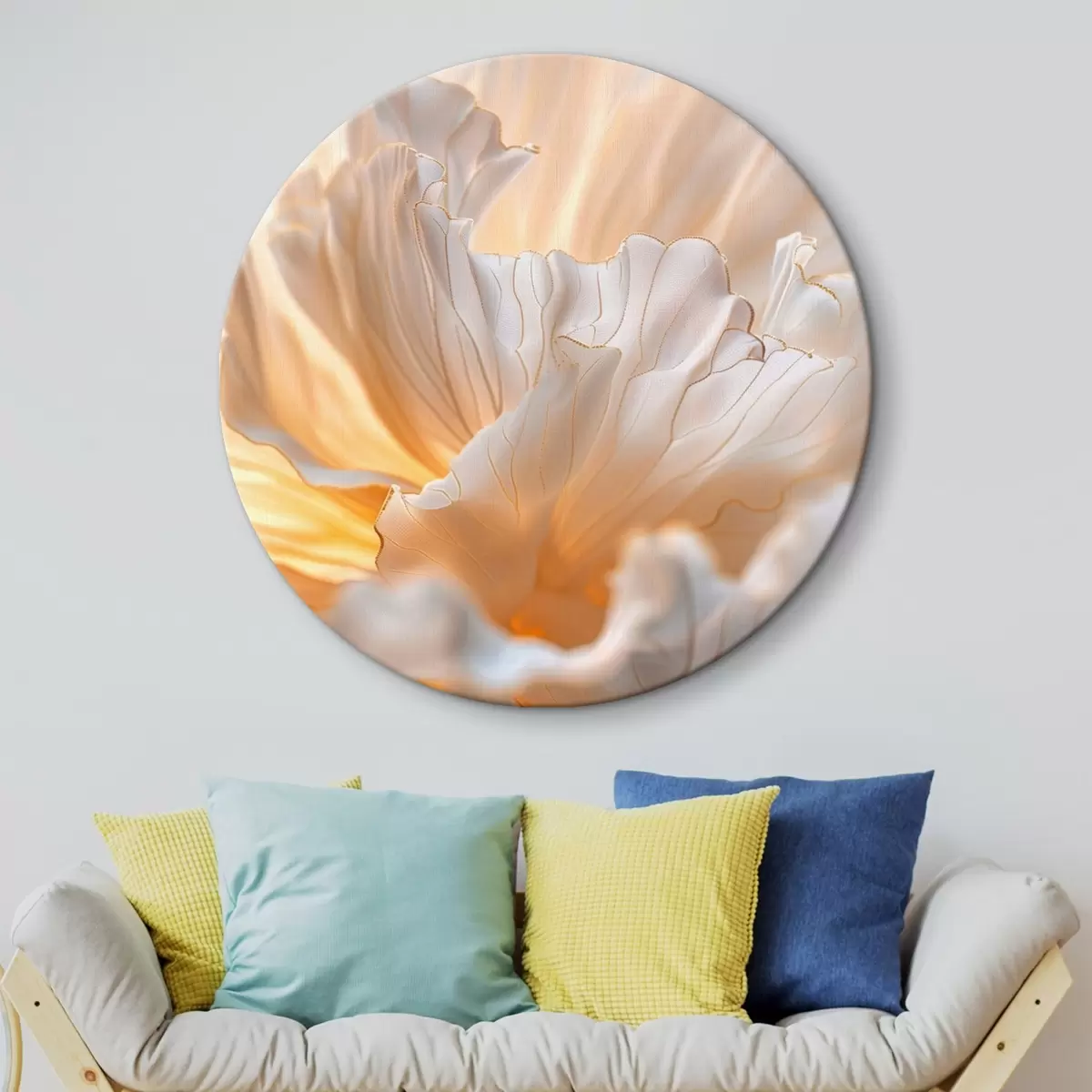 Tableaux ronds Pétales délicats aux nuances chaudes avec des bords jaune-orange r45820