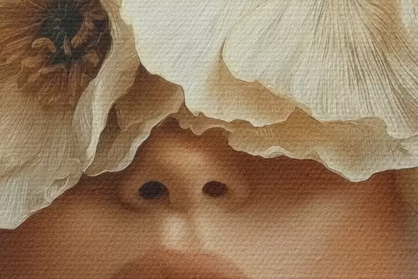 Image Portrait avec des fleurs beiges couvrant les yeux Nr r45870