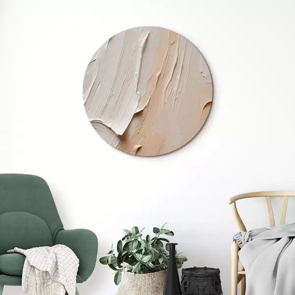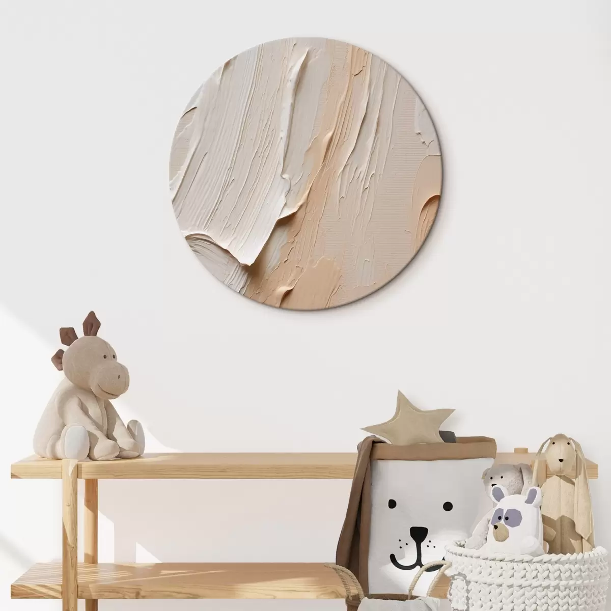 Tableaux ronds Coups de pinceau texturés aux tons pastel crème-beige r45871