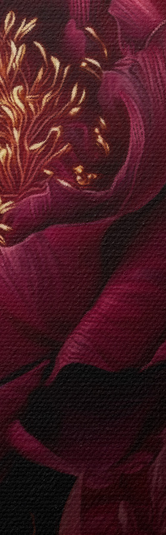 Image Pivoines bordeaux sur fond noir avec des touches de jaune Nr r45877