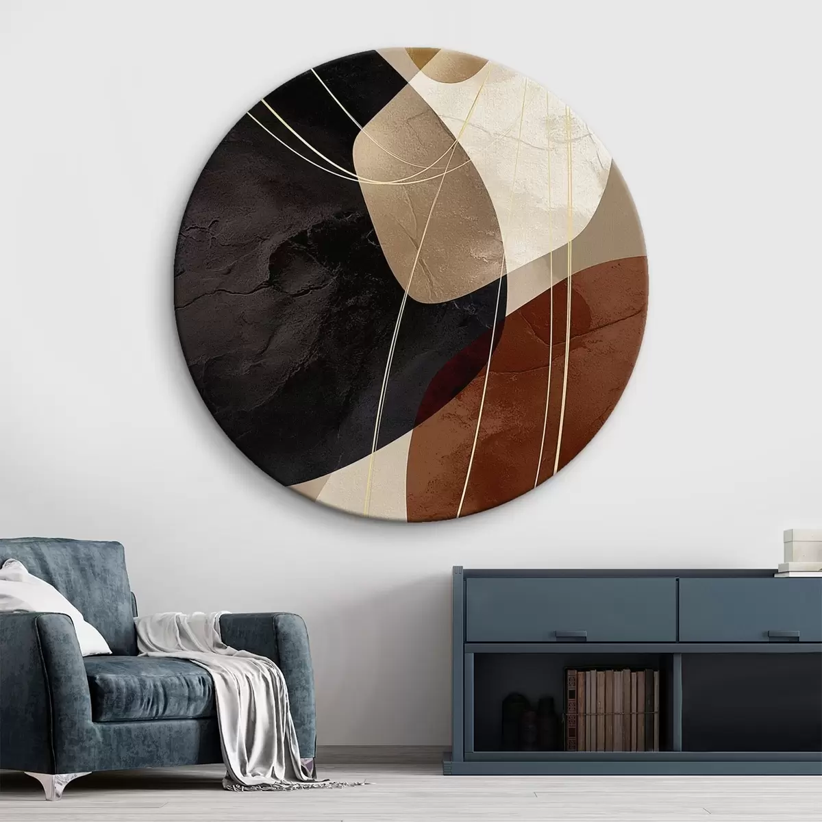 Tableaux ronds Formes géométriques dans une palette chaleureuse, lignes fines r45879