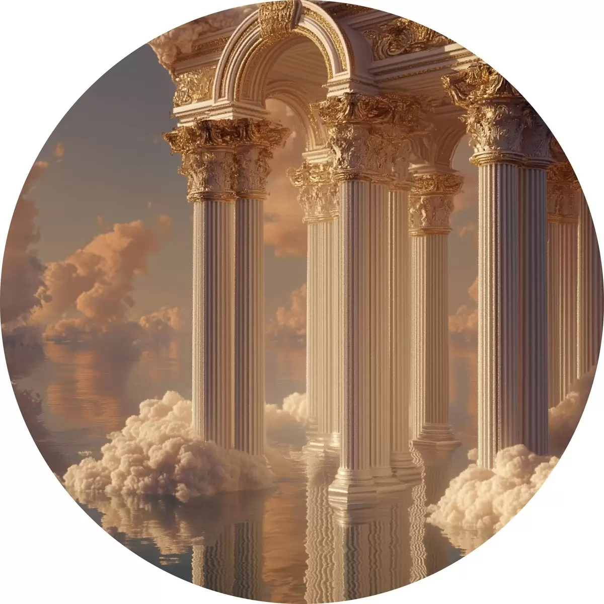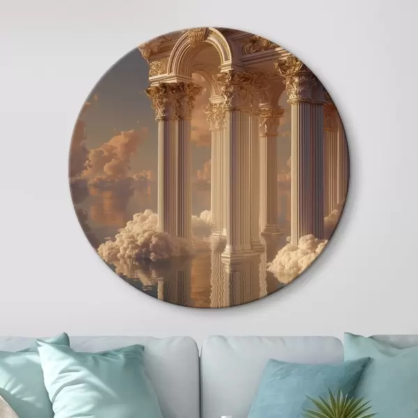 Tableaux ronds Colonnes dans les nuages, reflets sur l'eau r45881