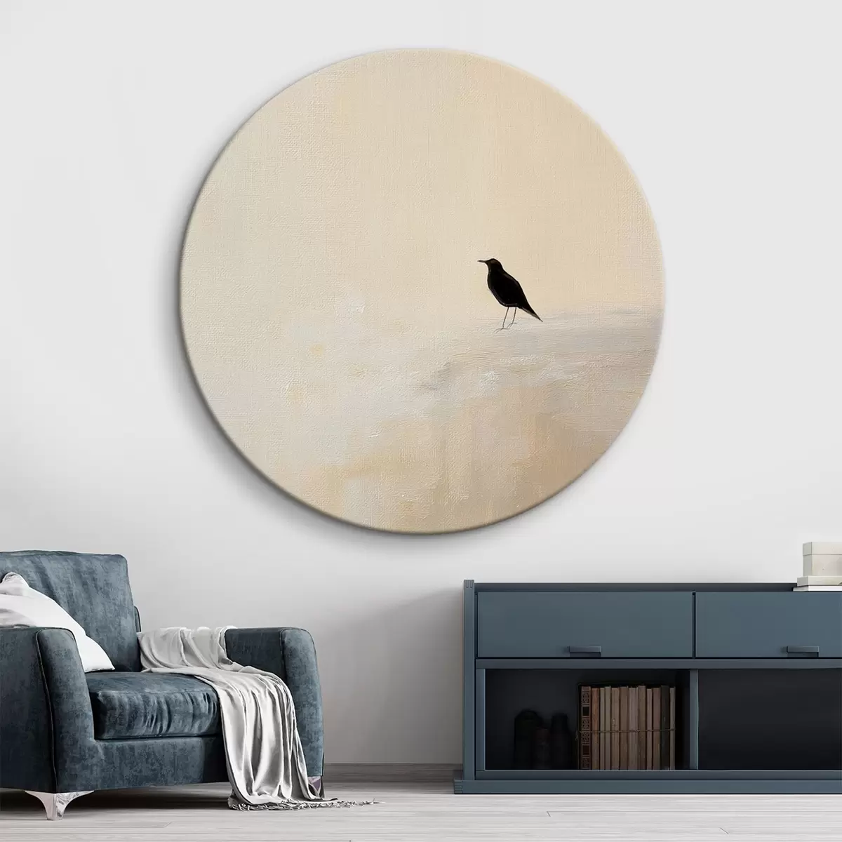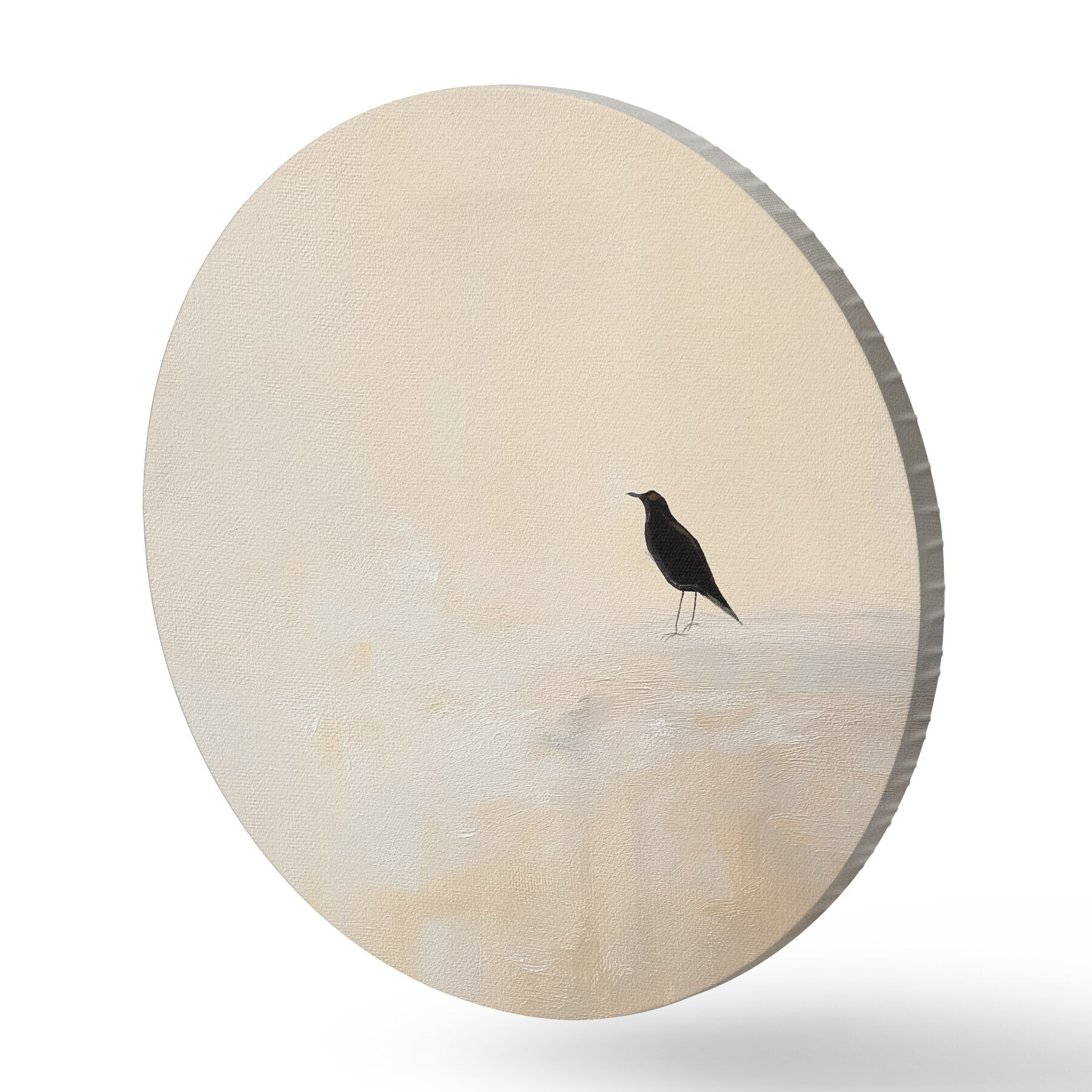 Tableaux ronds Oiseau solitaire sur fond beige chaud r45882