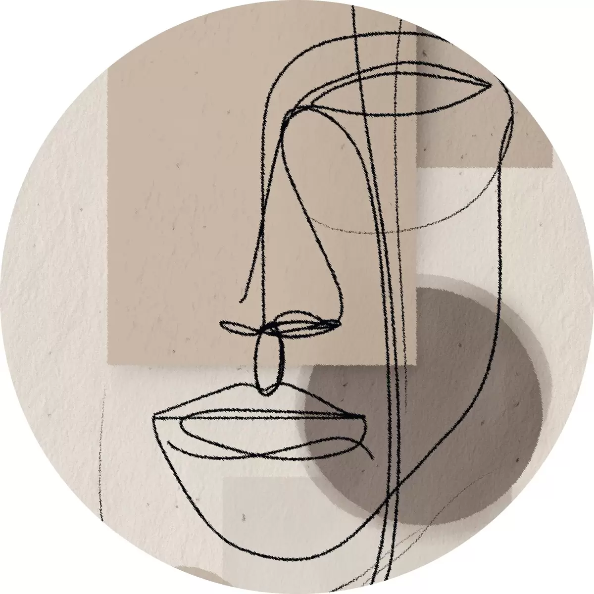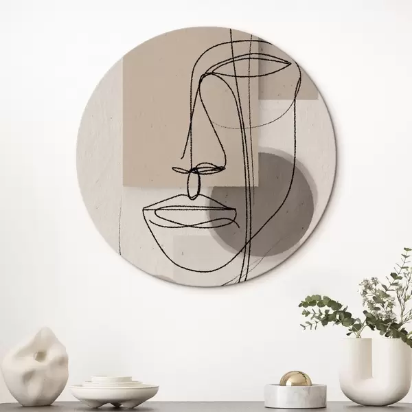 Tableaux ronds Portrait en ligne sur des formes géométriques beiges r45886