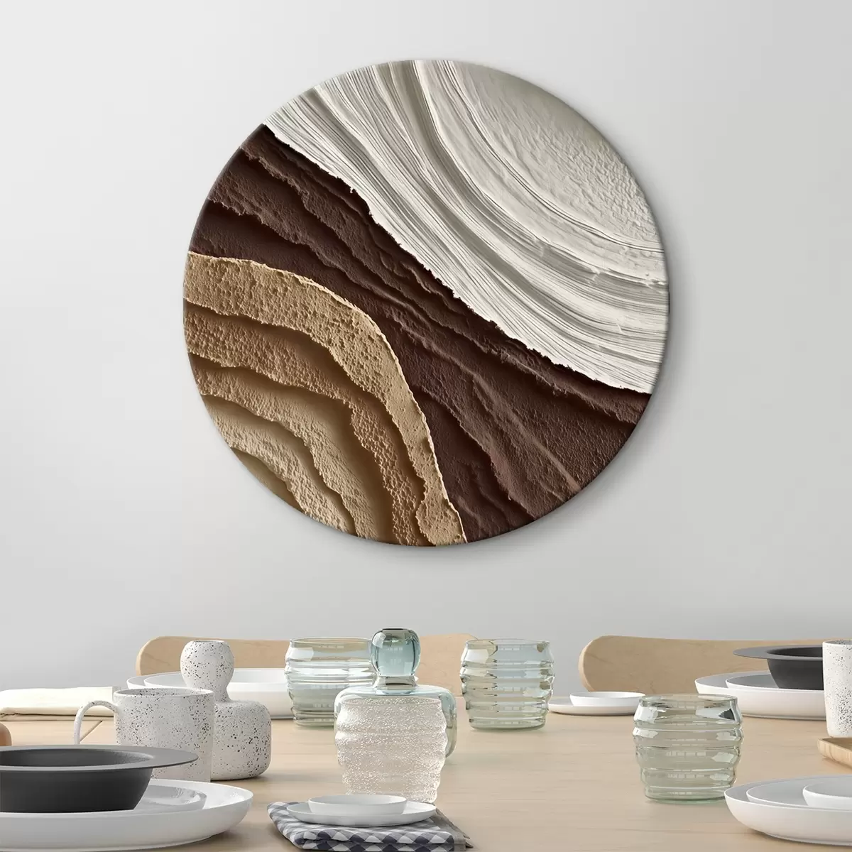 Tableaux ronds Terrasses brun crème à texture naturelle r45895
