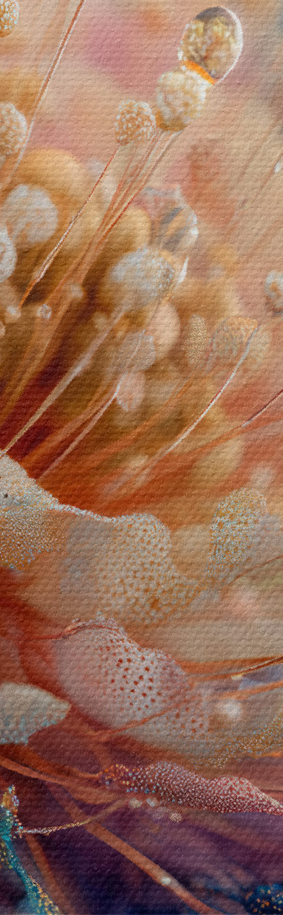 Image Fleur nacrée avec des gouttes de rosée, pétales couleur pêche et bleu Nr r45911